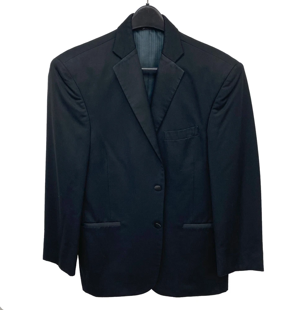 Elevate Your Formal Attire with This Tuxedo Jacket from Tallia Color: Classic Black Material: Crafted from high quality ultressa super 110's wool Jacket Features: Satin notch lapels for a sophisticated touch Two button front Non-vented in back Occasions: Ideal for weddings, proms, and black-tie events Quality: Renowned craftsmanship and attention to detail Investment: A timeless addition to your wardrobe for years to come Look: Sharp and confident in this classic jacket