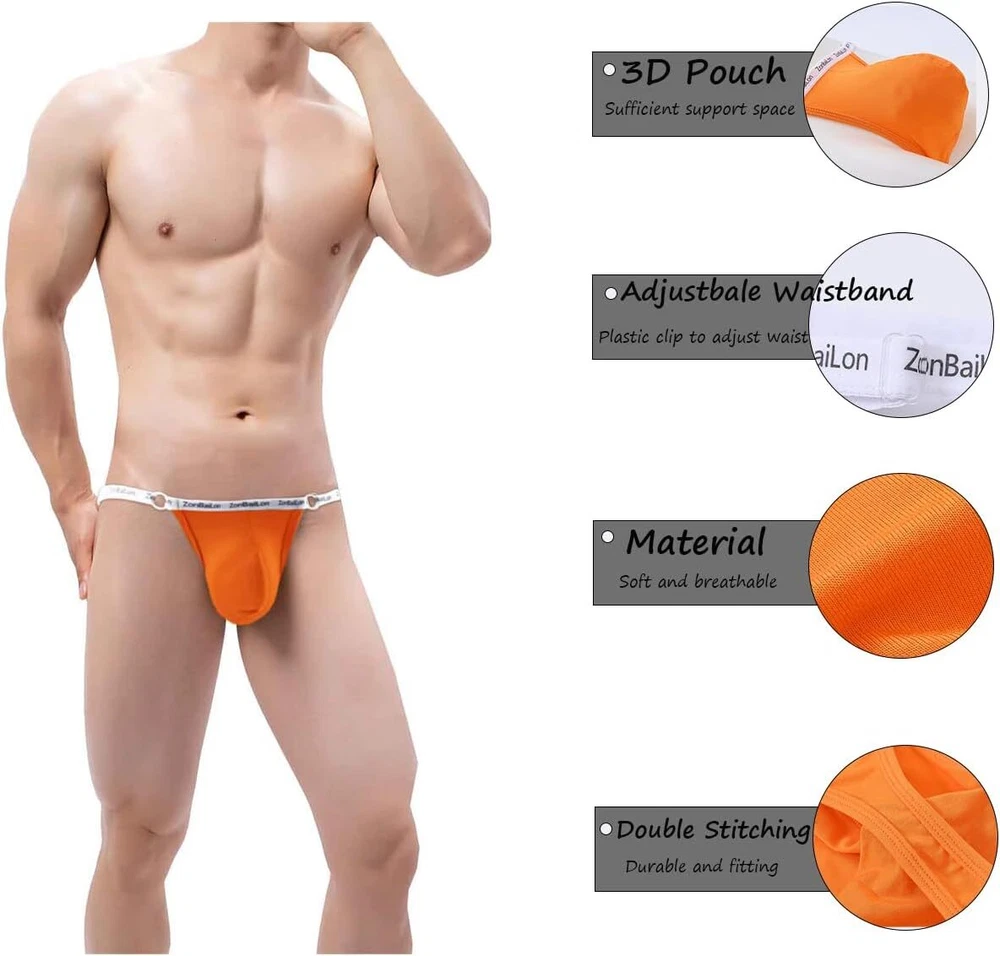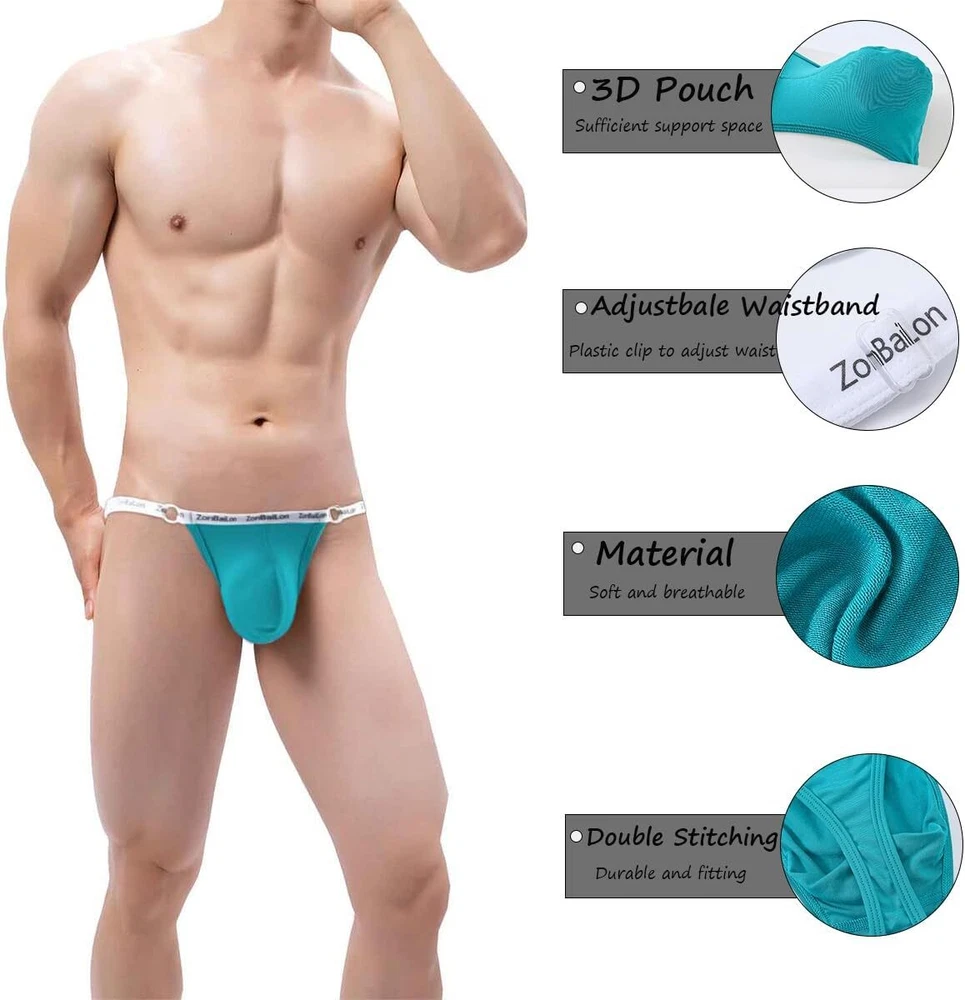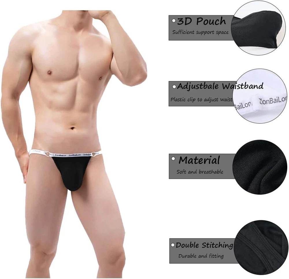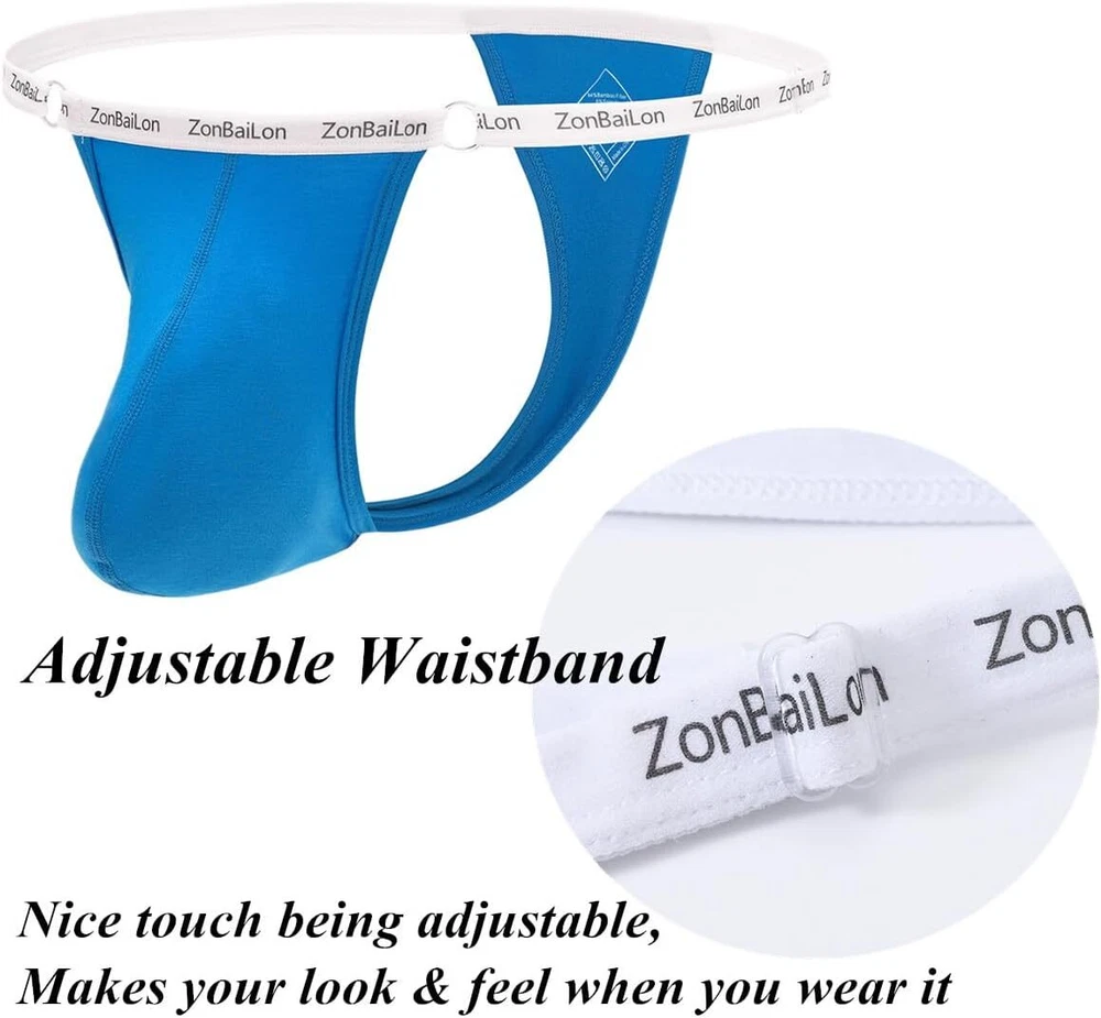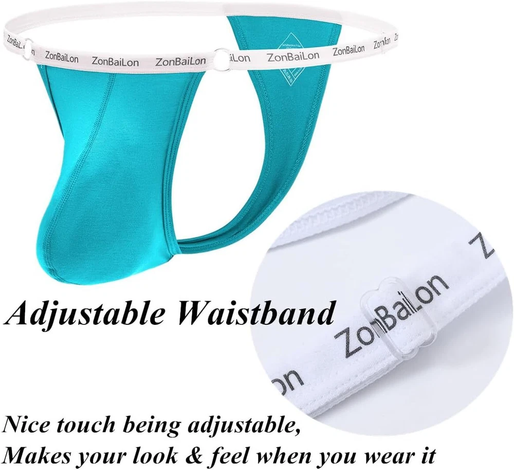 About this item High Quality Fabric: Made of 94% Bamboo Viscose, 6% Spandex, it is soft and breathable, making your skin more refreshing. Adjustable Waistband Design:Men's Thong can adjustable Waistband tightness, so that you have enough space to support your brother, and feel the effect of Thong without binding and squeezing. Tag-Free: Bamboo Fiber soft to touch, lightweight and super stretchy. Tag-free for comfort, give people a good wearing experience. Bulge Pouch: sexy men's thong underwear 3D U-shaped bulge pouch Sufficient space for support, more comfortable and breathable. Ideal Gifts: Great for sport or work,good present for valentine's day gift.