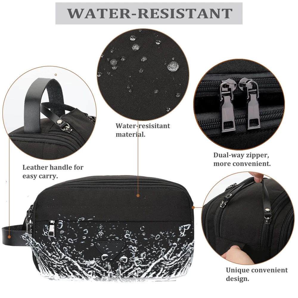 CROCOD Mens Toiletry Bag Travel Leather Toiletry Organizer Dopp Kit for Men Water-resistant Shaving Bag for Bathroom (Black) ★【Excellent Quality】: The toiletry bag is made from water-resistant oxford with polyester inner layer. It is easy to clean and water-resistant, lightweight and durable, the perfect combination for traveling.Soft sponge padding keeps your toiletries and cosmetics well protected.Comfortable leather carry handle allows for easy transport and high quality zipper makes it easy to zip and unzip. ★【Large Capacity】: Spacious main compartment hold bottles upright. Multiple pockets inside, can hold all your toiletries and shaving supplies organized. Dimension: 11" x 6.3" x 6.3"(L*W*H).A great size to store in a duffel bag/Travel Weekend Bag/Overnight bag. ★【Double Zipper Design】: This durable toiletry bag features a unique double zipper design, which allows for easy access to its inner contents. Simply pull on the connected zip puller for full exposure. ★【Perfect Organizer】: This mens toiletry organizer perfect for keeping your personal toiletries and cosmetics organized for that short weekend trip or longer vacation. Travel just got easier with this lightweight and portable dopp kit. ★【Multi Function】: The toiletry bag is well made multi-function bag that can be used as shaving kit, makeup bag/cosmetic bag, Travel Storage Organizer,bathroom bag and more. Suitable for both home and travel use. SHIPPING Domestic Buyers - We have confidence in our products, but if you are not fully satisfied please contact us within 30 days of purchase and you will get full refund. - We ship within 3 business days of payment, usually sooner - We offer FREE shipping on all orders! - We only ship to the lower 48 states, no APO/FPO addresses or PO Boxes allowed International buyers – please note: Import duties, taxes, and charges aren't included in the item price or postage cost. These charges are the buyer's responsibility. - Please check with your country's customs office to determine what these additional costs will be prior to bidding or buying. * Order Cancellation Policy ** You can return a product for up to 30 days from the date you purchased it. 1. The seller reserves the right to cancel the special case only due to eBay cancellation fee. 2. The decision of seller is the final. 3. The seller will respond to the cancellation request within 2 business days. Please wait for the result of cancellation. 4. In case the cancellation is not completed by some reasons, the buyer can follow the options below to get the refund. 4.1 The buyer can reject the item when it arrives. 4.2 The buyer can send the item back to the seller within 30 days If the buyer receives item (USA Shipment ONLY). The seller will provide the FREE return label to the buyer when the buyer opens " Return Item" case on eBay by using the reason as "Change my mind" ONLY. 5. When buyer has placed the order. The order will be processed and completed by automatic warehouse system within 5 minutes. In case that buyer sends the cancellation request after 5 minutes of placing the order, the request will be rejected. **Sending direct message to cancel the order is not allowed for every case.* Return Policy For the return case - If buyer would like to return the items for refund or replacement, please CONTACT SELLER to receive the free return label from seller. The refund or replacement will be processed with the tracking number of return label which is provided by seller only. The other ways of return which are not approved by seller will not be processed for the refund or replacement.