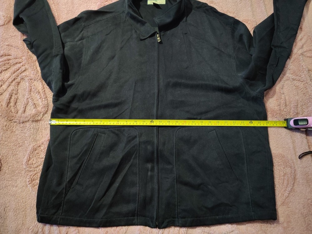 This men's Tommy Bahama black silk jacket in size XL features a full zip closure and a classic golf casual style. The softshell fabric, made of silk with an acetate lining, is perfect for the summer, fall, and spring seasons. This jacket is designed for casual occasions and is part of the Tommy Bahama product line. Made in China, this jacket is a stylish and high-quality addition to any man's wardrobe.