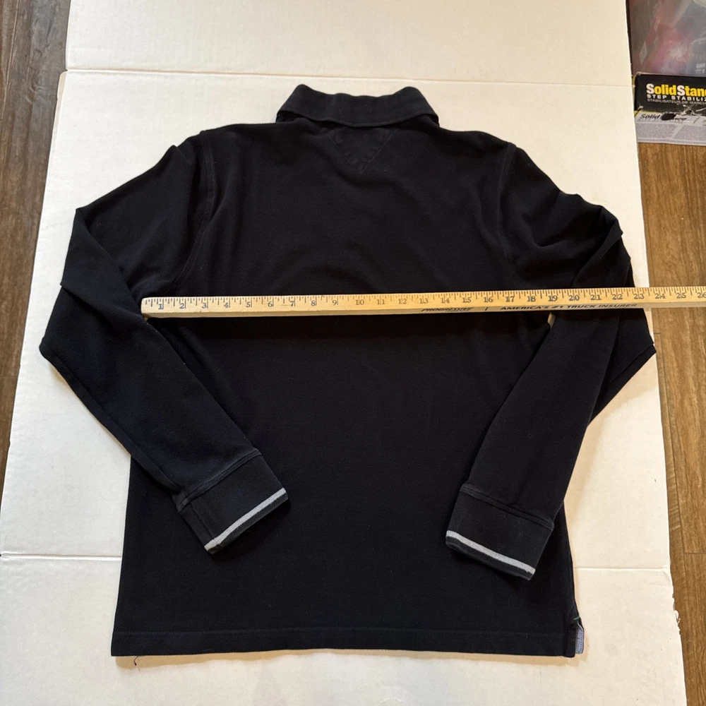 Crafted with the classic style and comfort that the brand is known for, this men's polo by Tommy Hilfiger features a timeless striped pattern. The regular fit design ensures a flattering silhouette for everyday wear, while the long sleeves add a touch of sophistication to your ensemble. In a versatile medium size, the shirt boasts a crisp green hue that pairs effortlessly with a variety of bottoms. The fabric is meticulously washed to achieve a medium level, enhancing both the look and feel of the shirt. Whether for casual outings or smart-casual events, this polo is an exemplary addition to your wardrobe.
