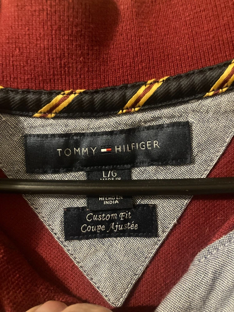 Elevate your casual wardrobe with the classic Tommy Hilfiger polo shirt. Designed for the modern man, this burgundy polo embodies a perfect blend of style and comfort. The shirt comes in a regular fit, size large, making it an ideal choice for those who value both elegance and ease. Crafted with attention to detail, the shirt features short sleeves and a dark fabric wash that lends a sophisticated edge to your everyday look. Whether you're hitting the golf course or enjoying a weekend outing, this polo shirt is sure to become a go-to in your collection.