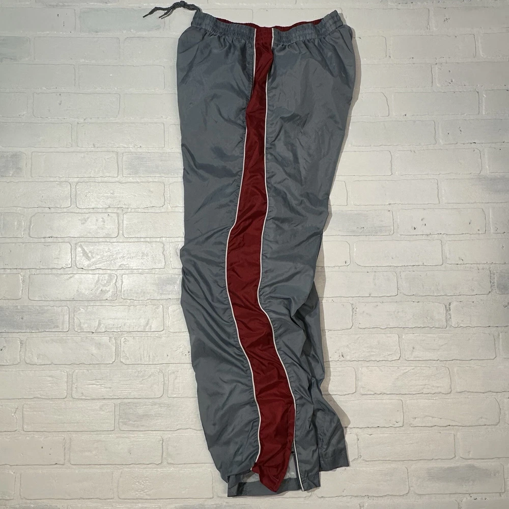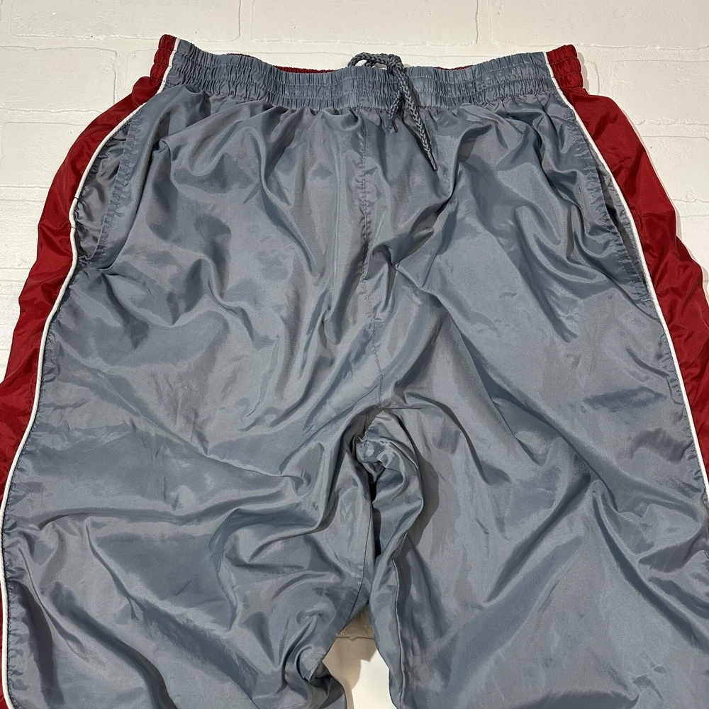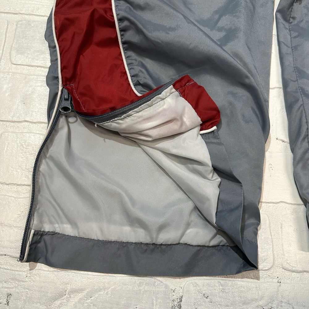Mens Track Windbreaker Jogger Lined Pants Gray & Red Y2K Size Large