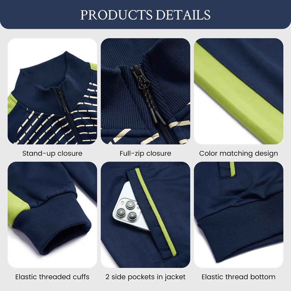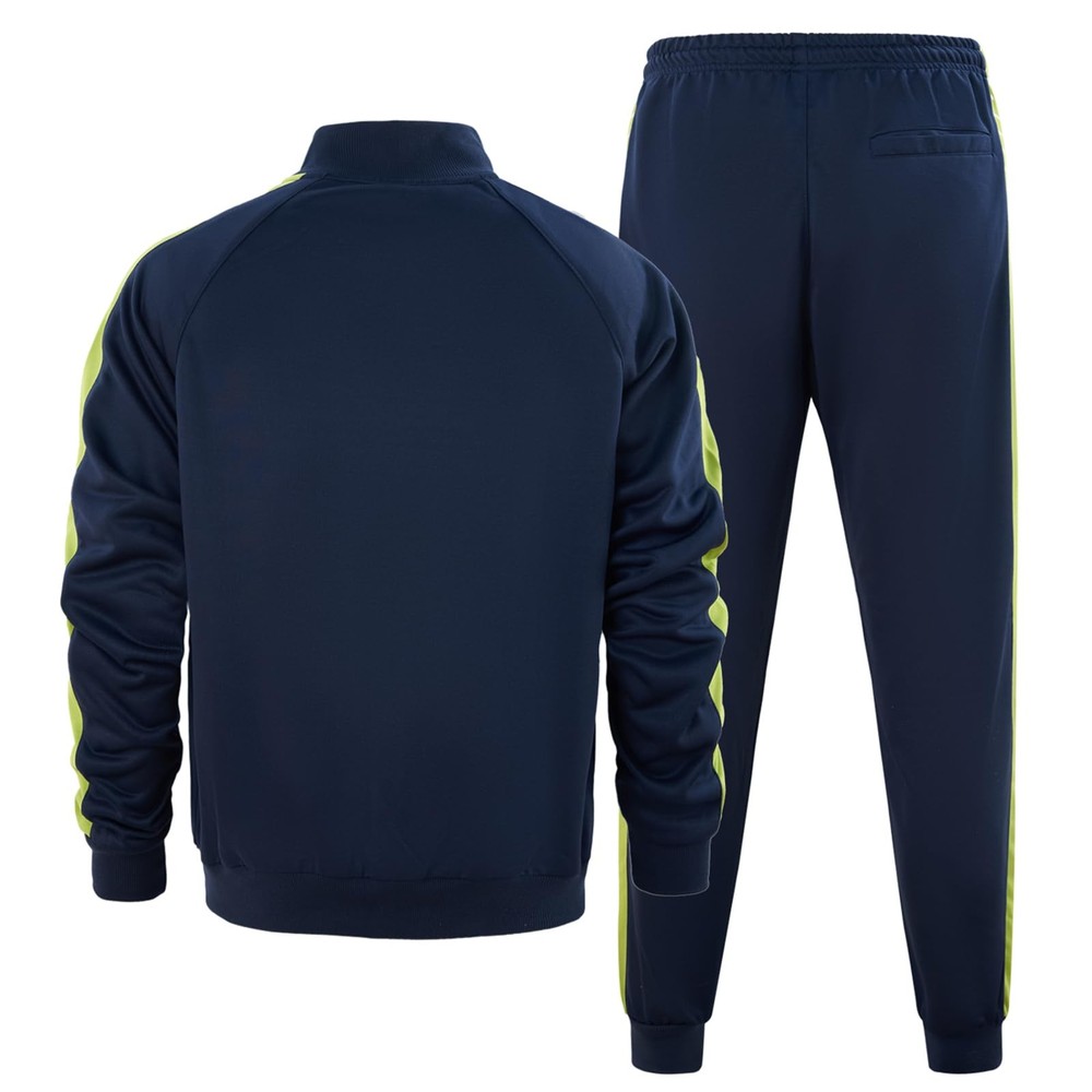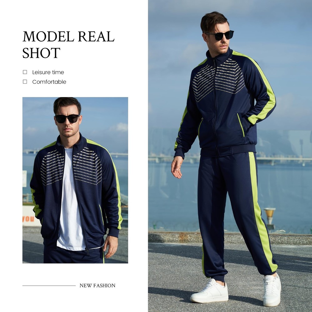 Material:Polyester. Soft comfortable stretch and smooth fabric. Package content: jacket * 1, pants * 1; Suitable for chilly moring or night when you are out for running. Side pockets on both jacket and pants,convenient for you to bring small things with you,like keys,.Full-zip front offers easy on-and-off. Stretch waistband and drawcord for a slim fit as you need. Casual & Sports sweatsuits are perfect for any occasions: basketball,soccer,daily wear,running,gym workout,training,running,jogging,hiking or other outdoor activities