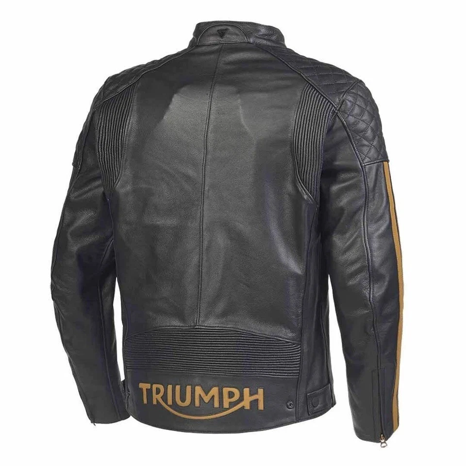 Triumph Braddan Motorcycles Riding Jacket Air Race Sports Cowhide Leather Biker Jacket Gear up in style and safety with the Triumph Air Race Sports Motorcycle Jacket . Crafted from premium-grade cowhide leather, this biker jacket combines durability, protection, and a sleek racing design. Designed for riders who demand performance and a bold look, the jacket offers a comfortable fit for long rides. Whether you're cruising the highway or tearing up the track, this jacket keeps you secure and stylish. Product Specifications: Premium Cowhide Leather: Made from 100% genuine cowhide leather for durability and long-lasting wear. Racing-Inspired Design: Quilted shoulders and stylish contrast stripes on the sleeves enhance the sporty look. Sporty Racing Design: Inspired by Triumph’s racing legacy with bold graphics and aggressive cuts. Comfort: Soft inner lining for comfort Zippered Pockets: Multiple secure pockets for essentials while riding. Versatile Wear: Ideal for bikers, casual outings, or fashion-forward individuals. YKK Zippers: Durable and smooth front and pocket zippers. Available Sizes: XS, S, M, L, XL, 2XL, 3XL, 4XL, 5XL Customer Satisfaction Guaranteed: We stand by the quality of our products and your satisfaction is our top priority. If you’re not completely happy with your purchase, we offer easy returns and responsive customer service to make it right. Shop with confidence—your satisfaction is 100% guaranteed! Shipping Policy: Worldwide shipping via DHL & Fedex within 5-7 business days; $35 extra for remote areas. Delivery in 5-8 business days, with customers responsible for customs fees. Return Policy: 30-day returns accepted customer covers return shipping. Full refund for items returned in its original condition. Fast Shipping | Easy Returns | Satisfaction Guaranteed