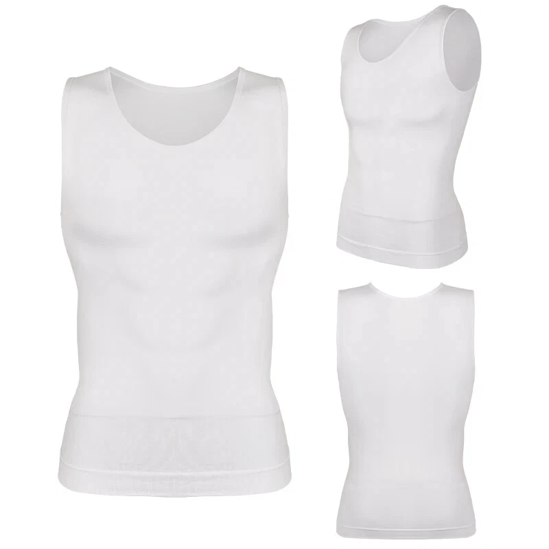 Description Color:Black/White Material:92%Polyamide,8%Elastane Asian Size:S/M/L/XL/2XL SHAPE YOUR BODY- This FAT BURNING ASSISTANT will hide "man boobs" very well, tighten "beer belly" in front, trim love-handles on sides, eliminate back fat, dramatically improve posture on the back with crisscrossing back panels. LIGHT WEIGHT UNDERSHIRT-Invisible under all your clothes, such as suits, formal dress shirts, workout shirts, t-shirts, polos and sweaters. Wear it anytime, anywhere, look inches smaller and pounds thinner. This Compression Vest is the best choice for body shaping, definitely a secret weapon that brings your self-esteem back. HIGH QUALITY NYLON AND SPANDEX TO STAY SHAPE- This body shaper is made of high-end Nylon and Spandex, there must not be even a single sloppy stitch, the seams are very sturdy, unbreakable even under strong pull and won't lose its elasticity after use. Wear this firming tee flattens your chest, stomach, back fat.This male Shapewear best for zumba, yoga, gym, fitness, running, jogging, hiking, cycling and much more sports. EXCELLENT COMFORT- The light, highly-elastic fibre offers full range of movement, extremely breathable, sweat absorbing and heat releasing, accelerate Weight Loss by speeding up metabolism . Not only maintain the natural texture, also keep the lasting elegant sense and excellent comfort. This Slimming vest give you 360 degree superior support and stay comfortable all day long. 【HOW TO WEAR】- You may not be comfortable when you wear this compression shirt for the first time, it will be a tight fit. But you'll get used to it after a week. We strongly suggest you to gradually prolong the time of wearing until you get used to it. Wearing our slimming body shaper, with healthy eating and scientific exercise, you'll be successful in weight loss. Size Chart Attention: sleeveless style please wear from below Model Show