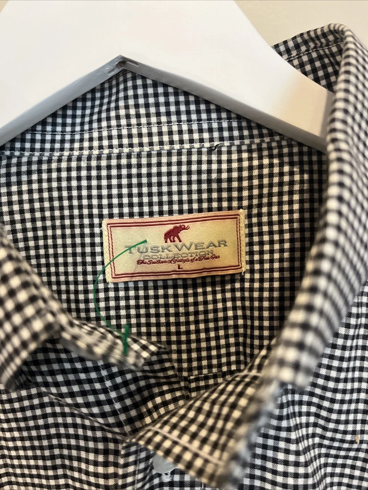 Elevate your wardrobe with this stylish button-down shirt from the TuskWear Collection. Featuring a classic black and white color scheme, this shirt is perfect for any occasion. The long sleeves and button-down collar lend a touch of sophistication, while the comfortable regular fit ensures that you can wear this shirt all day long. Crafted for men, this shirt is available in size large and is made from high-quality materials that are built to last. The colorful theme of this shirt adds a fun and playful touch, making it a great addition to any casual outfit. Perfect for any season, this shirt is a must-have for any fashion-forward individual.