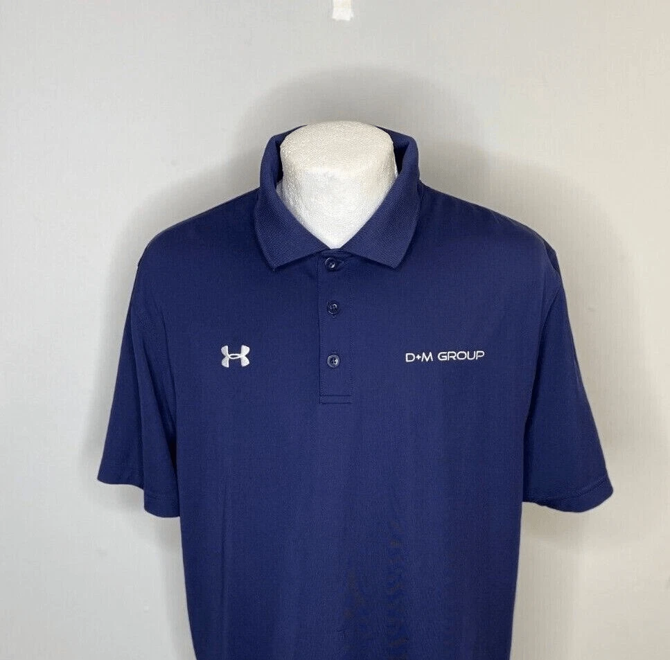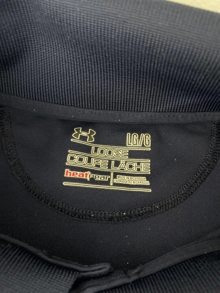 Men's Under Armour Golf Polo Blue Heat Gear Size Large Loose Stretch Logo (2358)