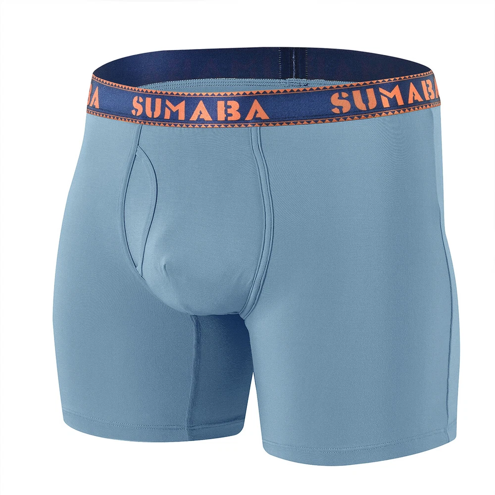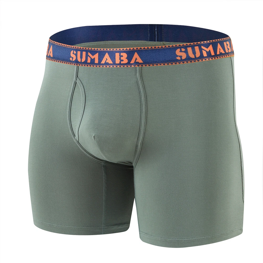 About this item 【SUPERIOR FABRIC】This classic bamboo underwear for men is made of Bamboo Viscose with 6% spandex, soft and elastic, which make it a comfort flex fit boxer briefs for men, men's breathable underwear boxer briefs moisture-wicking. This lightweight men‘s briefs underwear is soft, functional and hard-wearin 【UNIQUE DESIGN】This long boxer briefs underwear for men features 3D U pouch with fly front opening covered, enough space for bulge and has funtional enhancing effect. Elastic waistband in contrast color with letter print make it fashion and special. 6 inches inseam men boxer briefs increase comfort and keep warm 【INTIMATE DETAILS】Tagless boxer shorts for men and big boys won't pinch or bind, make sure comfort. Elastic Mid-rise waist design of this anti chafing boxer briefs for man is for easy pull on and take off. Long leg trunks for men with our good struction design would cover your thigh well to prevent cuffs ride-up and hike up in the base of thigh, make sure comfortable and functional 【WASH CARE】Machine or Hand Wash Cold, Do Not Bleach 【WAIST SIZE】5 Sizes of this men shorts available. M=32-34'', L=36-38'', XL=40-42'', XXL=44-46'', 3XL=48-50''