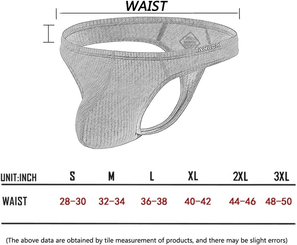 N ewly designed stretch and comfortable sexy thong. Featured materials: 1.Nylon:Nylon has excellent abrasion resistance like polyester.It is not easy to break and wash after being made into clothes.Nylon will not shrink under normal wear and washing.Secondly,nylon is very elastic and stretch. 2.Polyester:Polyester has a smooth surface, good abrasion resistance, good light resistance, high fabric strength and corrosion resistance. 3.Spandex:It is comfortable to wear, can adapt to the needs of the deformation of various parts of the body, and can reduce the sense of restraint of the clothing on the body. High elongation and high elasticity. Low rise men's briefs, lightweight, sexy, stretch,and let people so charming. Size Choices: Medium (32-34 Inches) Large (36-38 Inches) X-Large (40-42 Inches) 2X-Large (44-46 Inches) 3X-Large (48-50 Inches)