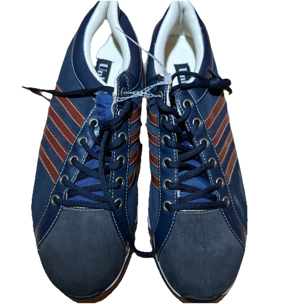 This is a pair of men's Unlisted boat shoes in blue, featuring a lace-up closure and a solid pattern. The shoes are a size 11.5 in the US and UK, with a medium width. Designed for casual occasions, these comfortable shoes are suitable for everyday wear. The upper material is manmade, and the shoes are made in China. Perfect for men looking for a stylish and versatile addition to their footwear collection.
