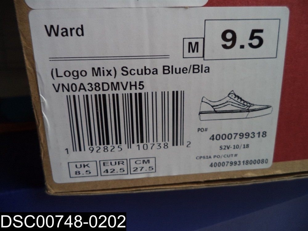This item is:___________________________________________Size 9.5M Men's Vans Ward Blue Scuba with Black Logo VN0A38DMVH5 HOLES IN SOLES Shoes have been slightly worn and returned to store. Overall they are in very good condition with lots of life left.________ See photos. Includes only what is shown in the picture. 1005 Warehouse Location:___Warehouse #1_Shelf______________14300____________________ Sales tax will be added to items shipping to locations in Kansas. _____________________________________________________________________ _____________________________________________________________________ _____________________________________________________________________ By bidding and or purchasing this item(s) you (the buyer) agree to the following terms and conditions: 1. An item is defined as the following: The unit or units purchased in the ebay listing, (it could be a single unit, multiple units, a mixture of units, a variety of units, the incorrect unit or any combination of units not mentioned). It also includes the packaging, or lack thereof, the shipping label, and any contents place in the package by error. 2. The Seller is defined as Seller and/or Consignor. 3. The buyer is defined as the entity that purchased the item from Seller and/or Consignor. 4. If the buyer does not agree to these terms and conditions then do not purchase from us. 5. All items are sold AS IS No warranty or liability is expressed or implied. 6. The buyer agrees that: All items are shipped without insurance. It is the responsibility of the buyer to let us know if they want insurance on the item. Insurance cost is $2.00 for every $50 insured, in $50 increments. The buyer agrees that if no insurance is purchased and the item is not received or received damaged that no claim shall be brought against the seller. 7. We only ship to PayPal confirmed street addresses, no exceptions. No PO Boxes, APO, FPO or similar addresses. 8. The buyer agrees that the sale is considered complete once the carrier has picked up the item from the seller. 9. The buyer agrees that if there is a dispute that arises that the dispute will be settled in the State of Kansas under the laws of Kansas. 10. The buyer agrees that the item fits the buyers purpose prior to bidding. 11. The buyer agrees to indemnify and hold harmless the seller from any and all claims arising out of any conditions or defects for the item or items that they purchased 12. We only ship to the continental United States. The shipping price quoted is for the continental United States Only. All other locations will be charged extra. Out of county buyers agree to pay any additional charges that we ask them to pay including but not limited to import duties, shipping costs, packaging costs, time costs, and other costs. If the item is shipped via ebay global shipping program these terms and conditions still apply. 13. Claims made against the carrier for non-delivery, lost in transit or any other reason shall be made solely by the buyer without aid from the Seller. 14. In the event that any clauses or phrases contained here within are ruled out by a judge, the law, a lawyer, jurors, and or any other entity all others remain in effect. 15. If any claim is brought against the Seller the buyer agrees to pay for any and all costs including legal fees, travel, time, accommodations, and other costs. Late payment will result in the seller charging interest at the maximum legal rate. 16. In any event or circumstance the maximum liability to the Seller is the purchase price plus cost of shipping plus sales tax if applicable. This amount is not subject to inflation, interest, inconvenience fee or any other price adjustment. 17. The buyer agrees there will be no refunds for any reason outside of the Ebay return policy. 18. The buyer understands that our items are wholesale, overstock, unclaimed, foreclosure purchase or salvage goods. Most boxes have been opened for inspection and photos. If items are listed as new they may not come with original packaging. 19. The buyer agrees that they are trained, licensed, qualified, and understand how to properly use, dispose of and handle the product in accordance with law and regulations. 20. The buyer agrees that if any part of these terms and conditions is determined to be void that it does not void or alleviate the enforcement of the remainder of this contract. 21. Seller and/or Consignor is not an authorized distributor, reseller or representative of the products featured on this website. All product names, trademarks, brands and logos used on this site are the property of their respective owners. The depiction, description or sale of products featuring these names, trademarks, brands and logos is for identification purposes only and is not intended to indicate any affiliation with or authorization by any rights holder.