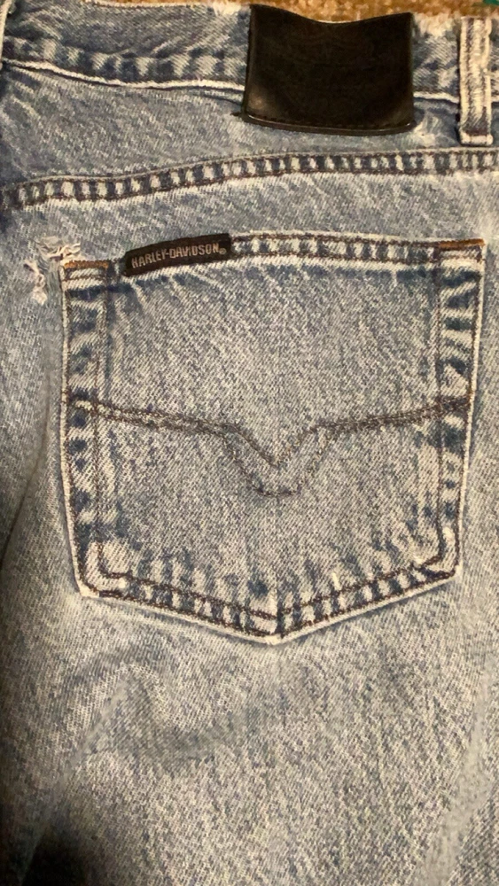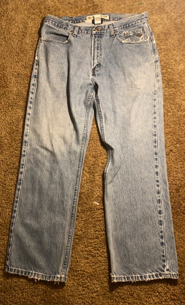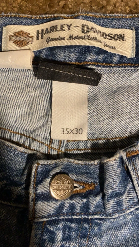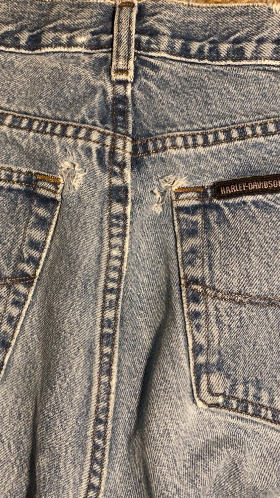 Style: Straight Material: Cotton Brand: Harley-Davidson Color: Blue Closure: Zip Type: Jeans Size: 35 Size Type: Regular Features: Distressed Inseam: 30 in Department: Men Vintage: Yes