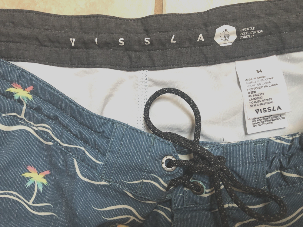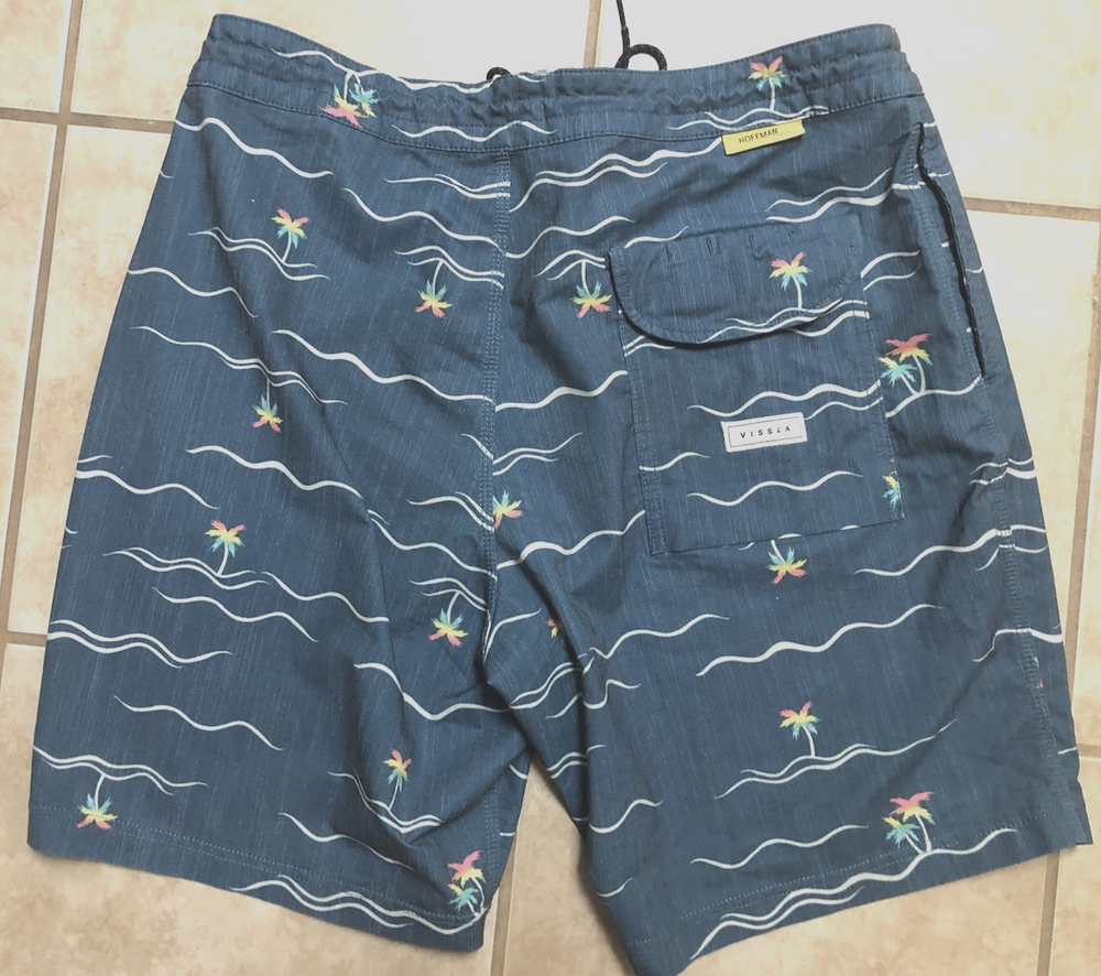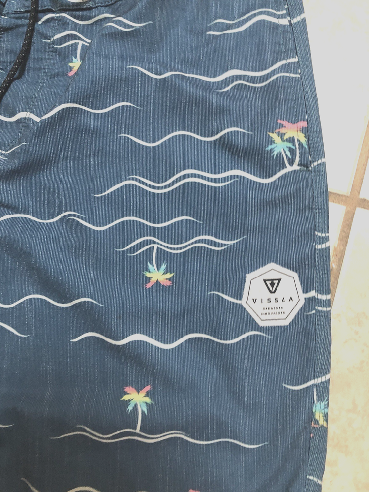 The Men's Vissla Board Shorts in size 34 are a stylish and functional addition to any swimwear collection. With a colorful Fair Isle pattern and made from Upcycle Poly-Cotton Stretch material, these board shorts offer both comfort and style. Featuring 2 hip pockets and 1 back pocket and drawstring closure, these shorts provide convenience and security while by the water. Perfect for any water activities or casual wear, these Vissla board shorts are a versatile choice for any man's wardrobe.