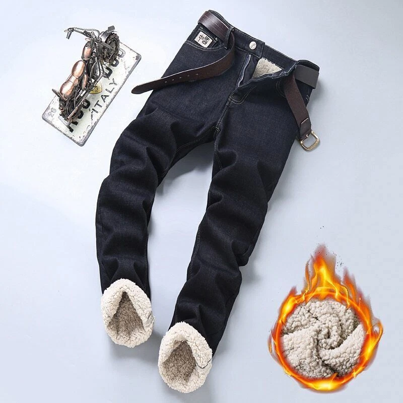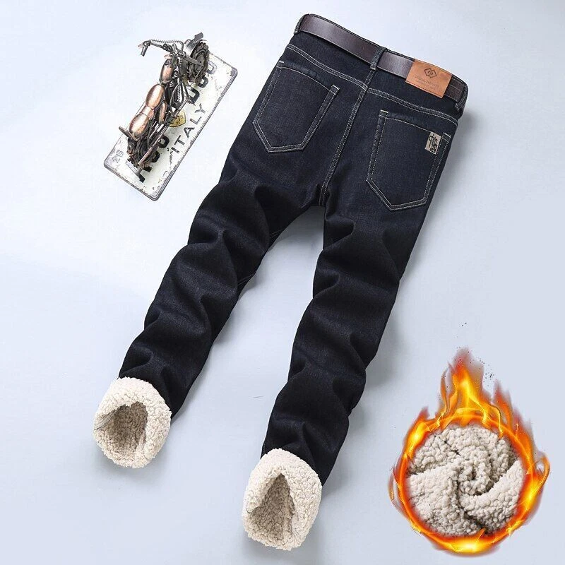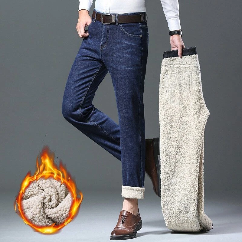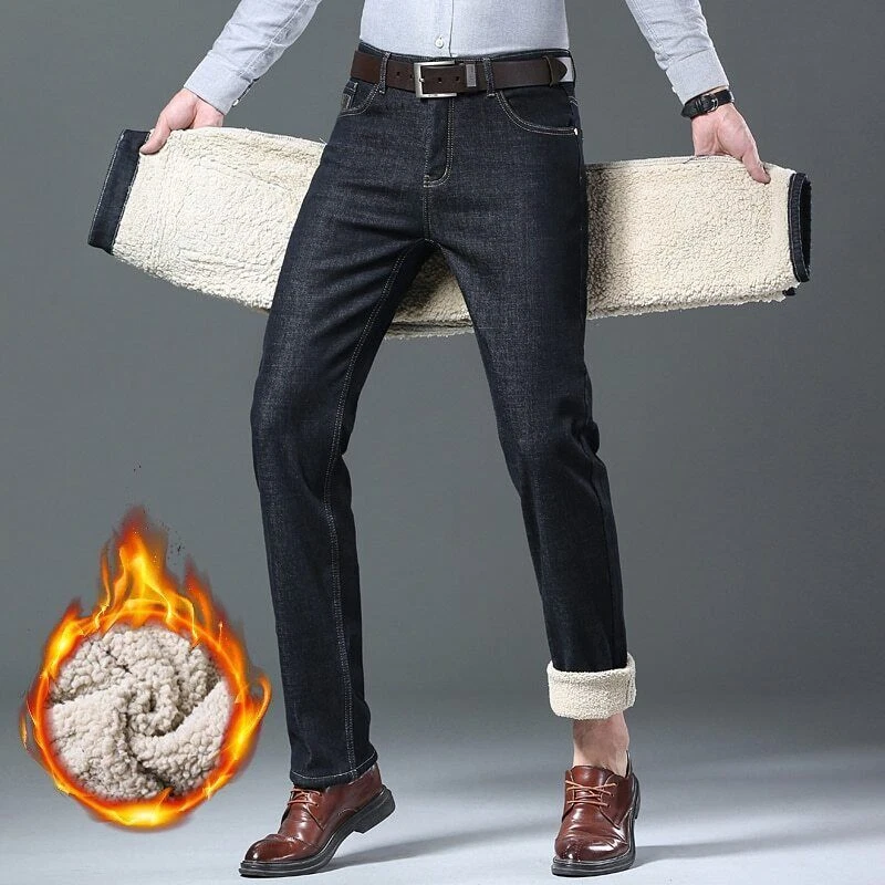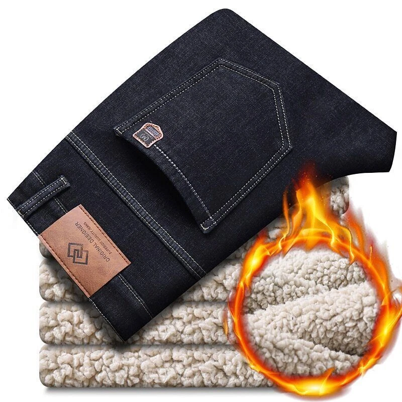 Men's Warm Jeans Business Fashion Classic Denim Straight Fleece Thick Pants