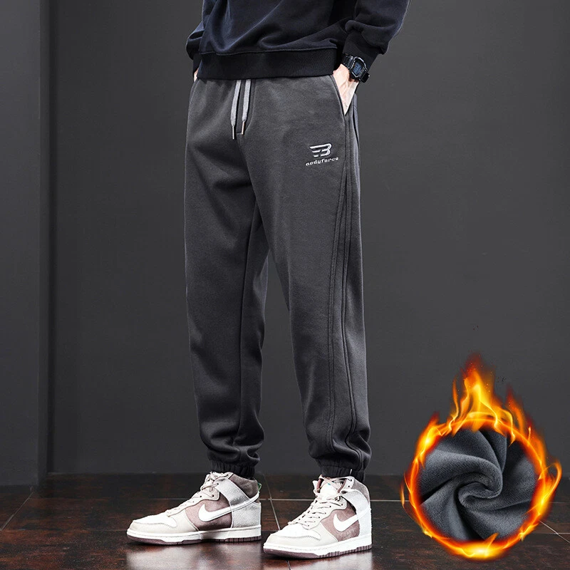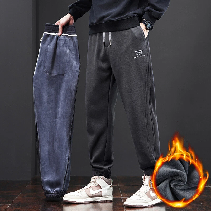 Mens Warm Sweatpants Thick Fleece Sweatpants Warm Fleece Lined Knitted Trousers