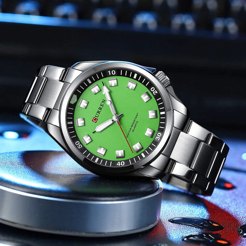 Men's Waterproof Quartz Watch with Steel Belt in Multiple Colors Product information: Color: Silver Blue, Silver green, silver Orange, Silver Black, Black green, black red Thickness: 11mm Waterproof performance: 30m Movement type: Quartz Dial diameter: 44mm Crown type: watch crown shoulder protector and bridge protector Case back type: Ordinary Mirror material: mineral reinforced glass mirror Buckle style: bilateral button Watch-buttom material: Stainless steel Strap material: Stainless steel Packing list: 1*Watch Product Image: Men's Waterproof Quartz Watch with Steel Belt in Multiple Colors Product information: Color: Silver Blue, Silver green, silver Orange, Silver Black, Black green, black red Thickness: 11mm Waterproof performance: 30m Movement type: Quartz Dial diameter: 44mm Crown type: watch crown shoulder protector and bridge protector Case back type: Ordinary Mirror material: mineral reinforced glass mirror Buckle style: bilateral button Watch-buttom material: Stainless steel Strap material: Stainless steel Packing list: 1*Watch Product Image: eBay integration by