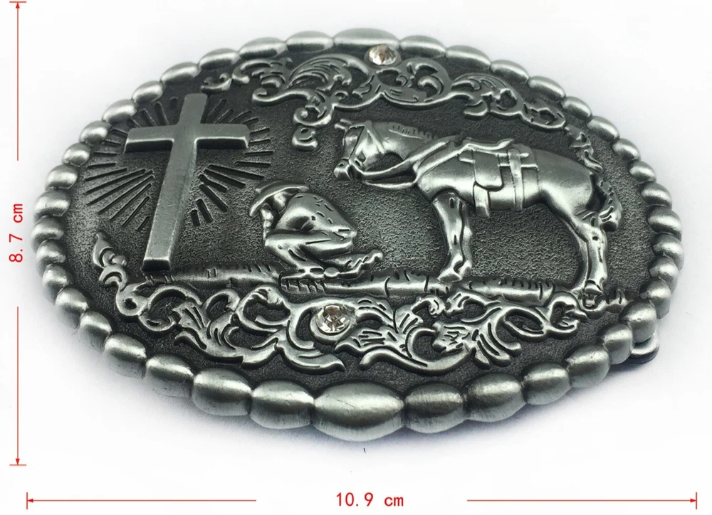 Men's Western Cowboy Belt Buckle Large Rodeo Casual Wear Cross Prayer Horse Oval