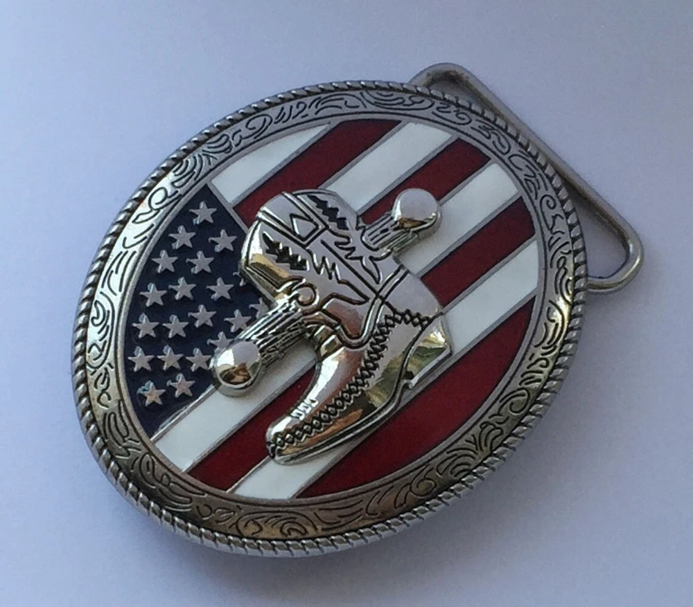 Men's Western Cowboy Belt Buckle for Rodeo Casual Wear - Riding Boot & US Flag