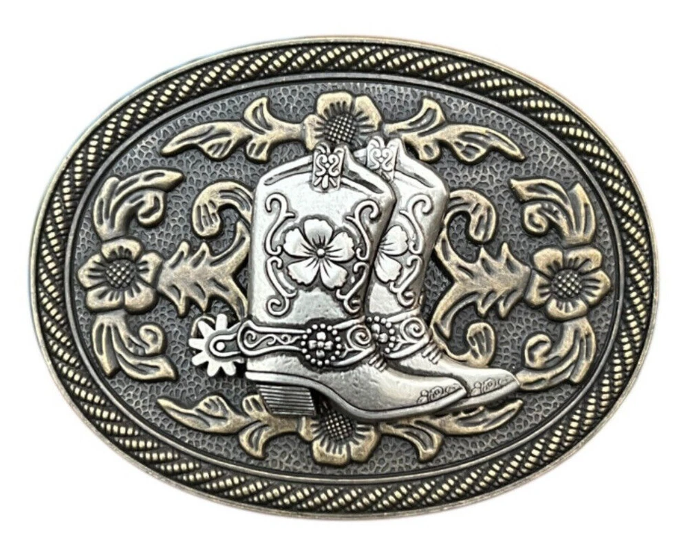 Men's Western Cowboy Belt Buckles for Rodeo Casual Wear, Floral Riding Boots USA