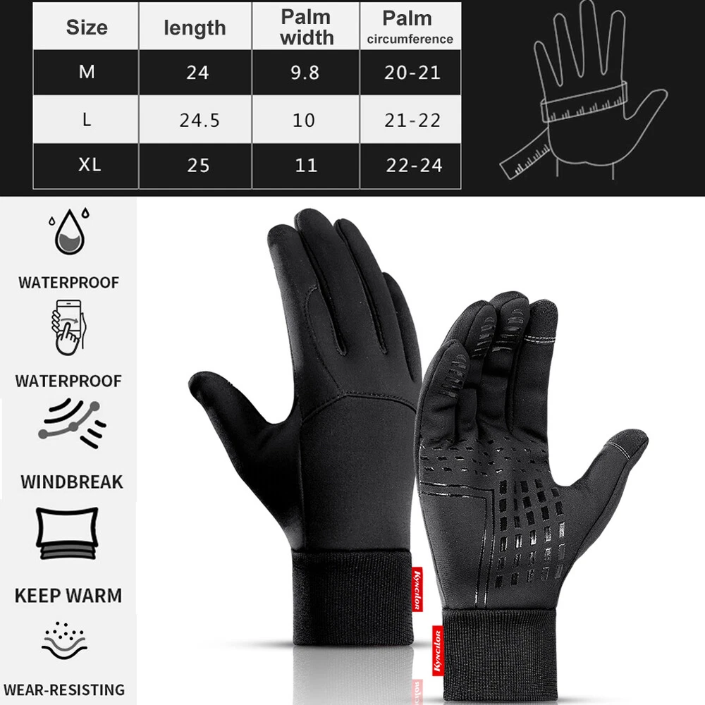 Product De script io n : 1.Skin-friendly soft, Breathable is not stuffy , Wi ndproof and Water Resistant high quality materials, with inner breathable and wa rm material. Strong sweat absorption, Windproof and warm. 2.Can effectively reduce the forces from handlebars, protect your palms from nerve hurt. 3.With five-finger smart touch screen tips , even when you wear the glove, you can still use your mobile phone. 4. Anti-slip silicone is designed at the palm and finger tips to provide grip stronger and grip more agile, wear durable. 5.It can for motorcycles, racing, cycling, hiking, skating, skiing and other outdoor activities. Please compare the size chart with yours before buying. 6. Free to adjust the elasticity of the wrist, simple and beautiful, novel style, strong adhesion, not easy to fall off, convenient and comfortable, using conductive materials, without taking off the gloves can also use the phone. Specifications: 1. Style: Full Finger 2. Color: Black 3. Size: M/L/XL Size Chart : Package Included: 1 Pair of Sports Full Finger Gloves