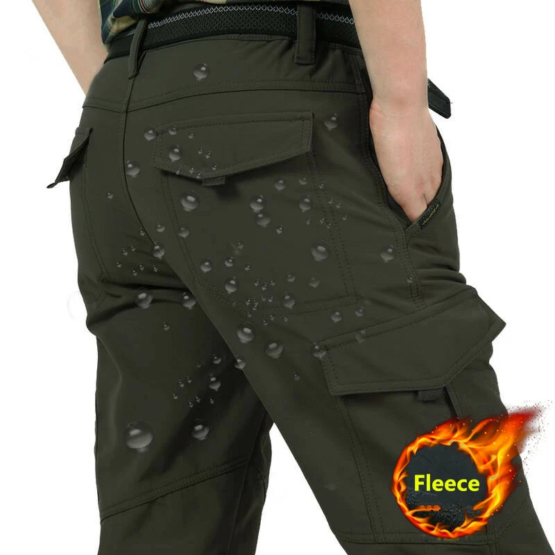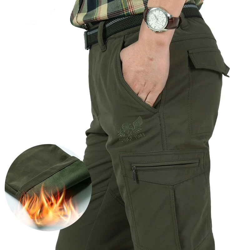Men's Winter Pants Thermal Fleece Lined Elasticated Work Cargo Combat Trousers