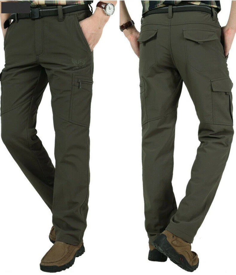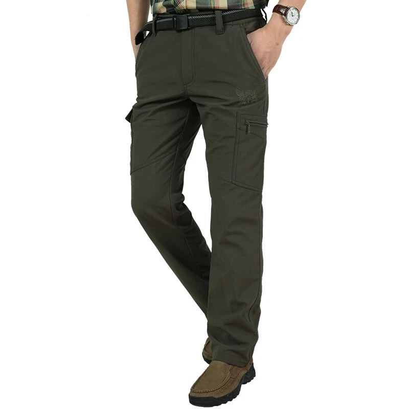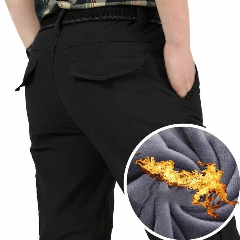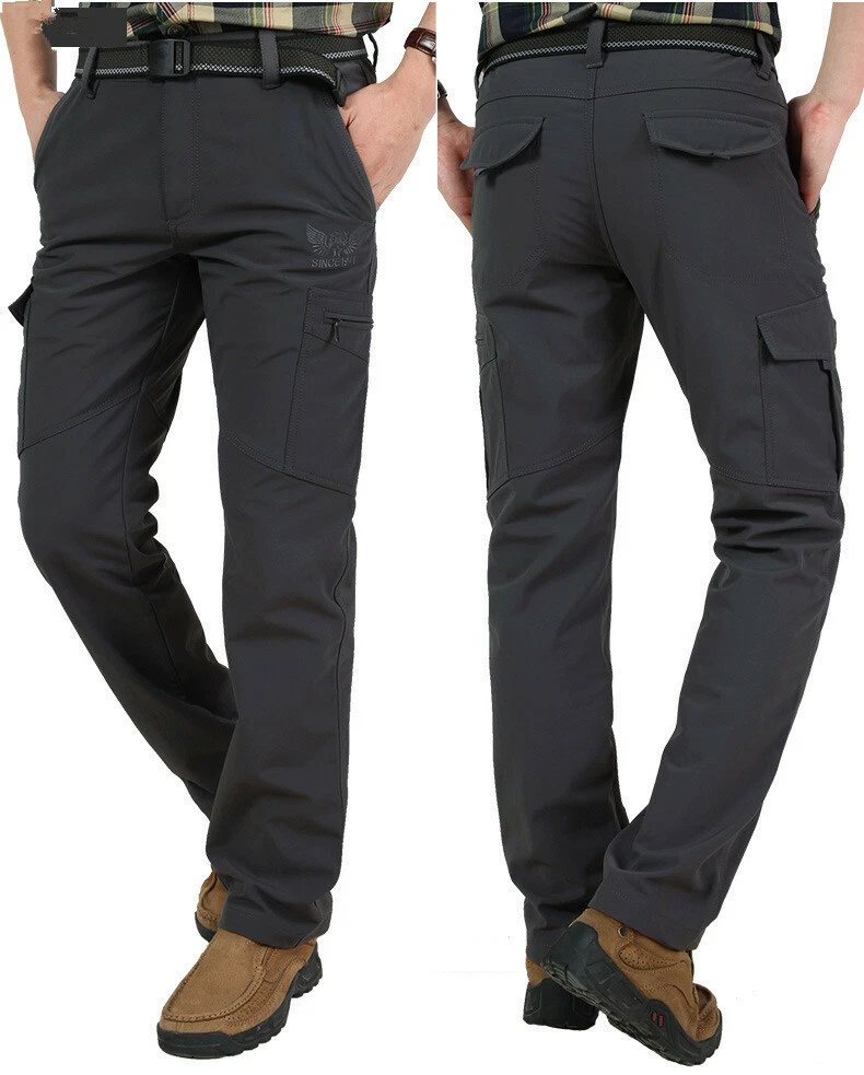 ❀Mens Thermal Fleece Lined Elasticated Cargo Combat Work Walking Trousers Pants