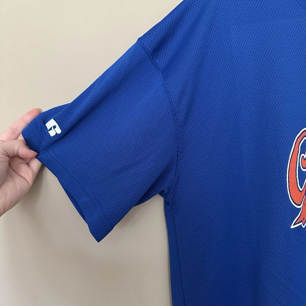 Men's XL Florida Gators Jersey Mesh Shirt Russell Athletic Henley Blue Orange approximate measurements lying flat length: 30" sleeve: 9" armpit to armpit: 25" 📦Packaged with care 📬 I will ship it out within 2 business days 🙂Smoke free home ♥️Offers welcome.