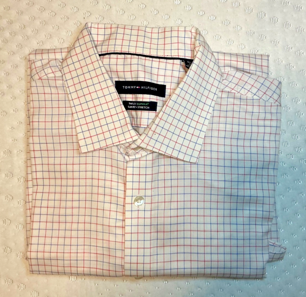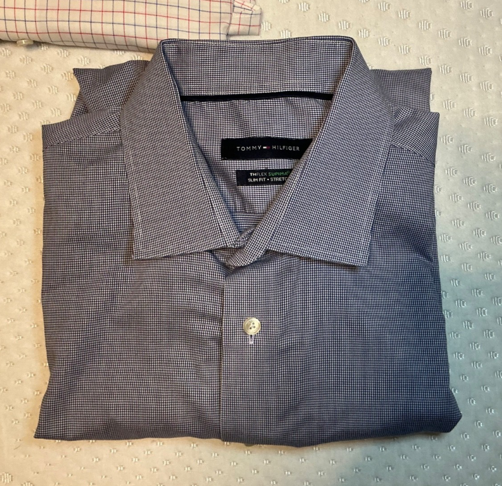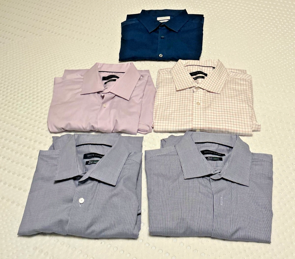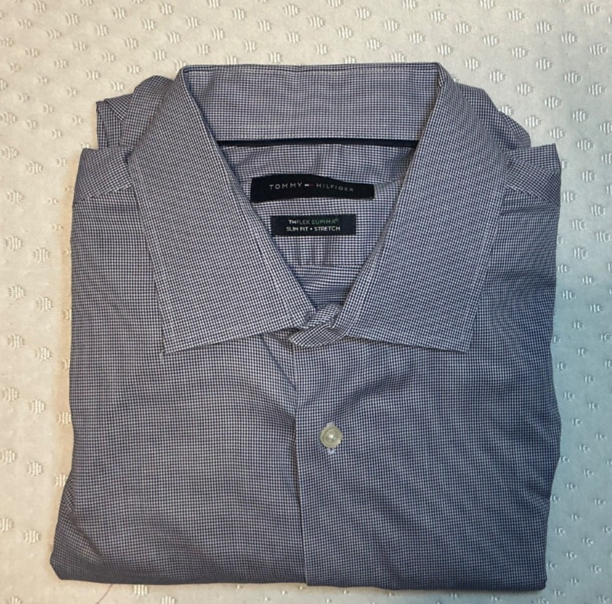 Intro Upgrade your rotation in one move. This 5-shirt bundle delivers premium slim-fit dress shirts from Calvin Klein and Tommy Hilfiger—stretch fabrics, modern cuts, and versatile patterns that go from office to night without effort. High-quality shirts at a fraction of retail. Detailed Item Description Lot of 5 men’s slim-fit dress shirts, all in XL (17 neck, 32/33 sleeve), featuring premium materials, stretch comfort, and modern tailored fits. Brands Included: 1 × Calvin Klein (Slim Fit Performance Non-Iron) 4 × Tommy Hilfiger (TheFlex Supima Slim Fit Stretch) Condition: Excellent pre-owned condition No visible stains, tears, or defects Clean, well-kept, ready to wear Shirt Breakdown: 1. Calvin Klein Deep blue solid Slim fit Performance non-iron fabric (easy care, travel-friendly) 2–3. Tommy Hilfiger TheFlex Supima (2 shirts) Micro houndstooth pattern Medium blue tones (dark blue on light blue) Supima cotton with stretch for comfort and mobility 4. Tommy Hilfiger TheFlex Supima White base with red & blue check pattern Clean, classic business-casual look 5. Tommy Hilfiger TheFlex Supima Lavender micro houndstooth Subtle color with a sharp, modern edge Key Features Across the Lot: Slim fit / tailored cut (not boxy) Stretch fabric for comfort Supima cotton (higher-quality, softer, more durable) Ideal for office, business casual, or travel Easy-care / low-maintenance fabrics Sizing: Neck: 17 Sleeve: 32/33 Fit: Slim Why this lot works: Covers core wardrobe colors (blue, white, lavender) Mix of solid and pattern for versatility High retail value originally ($60–$90 per shirt)