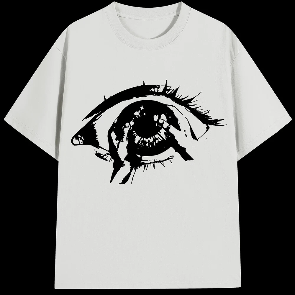 Mens Y2K Round Neck Casual Tops Loose Eyes Printed Blouses T-shirts Tees US