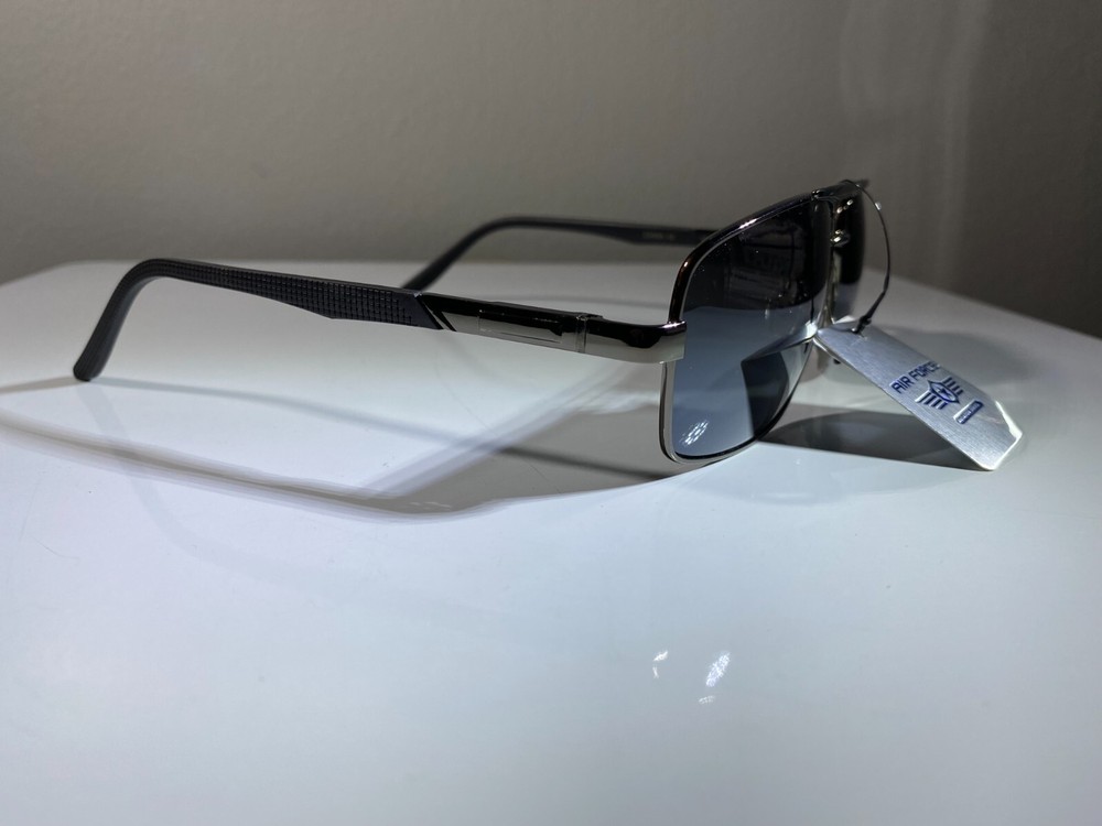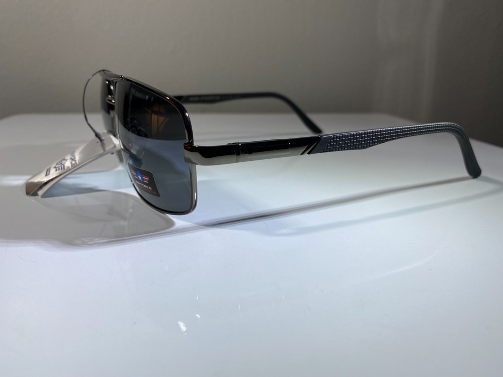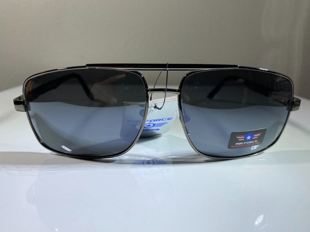 Men's aviation style sunglasses with metallic wire frame and smoke black lenses. Great price.