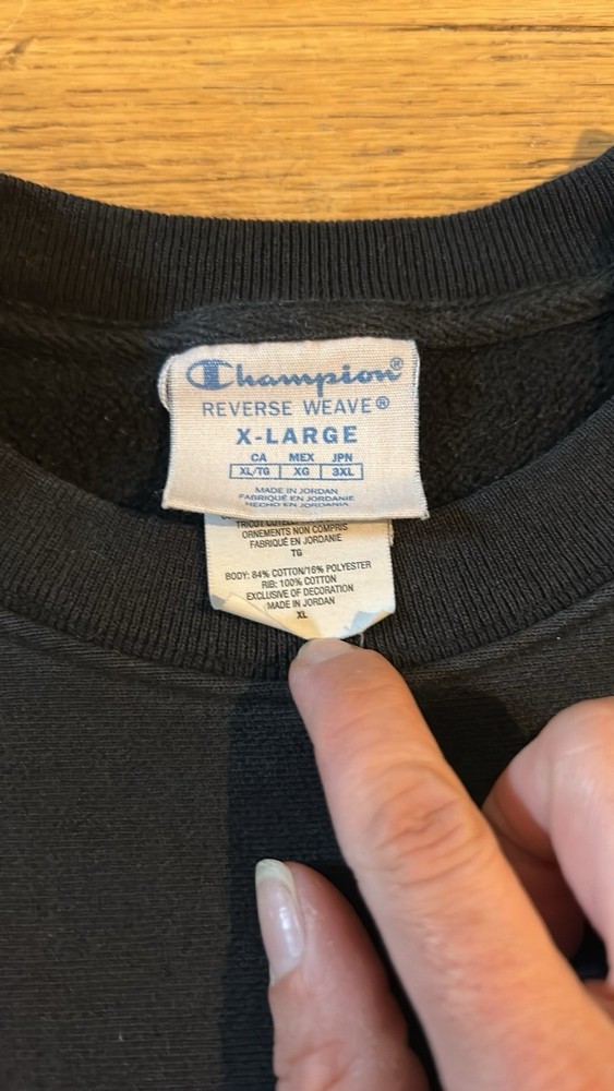 Men’s black champion sweatshirt, size extra large