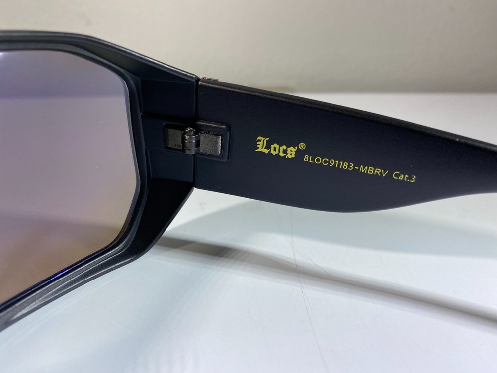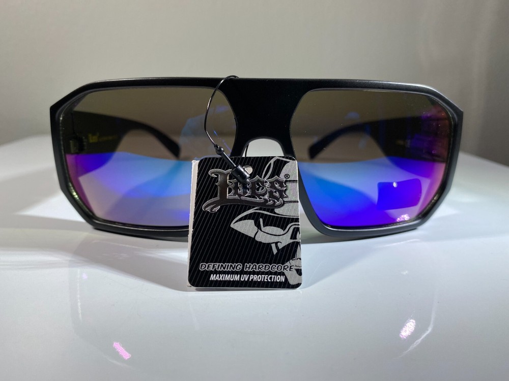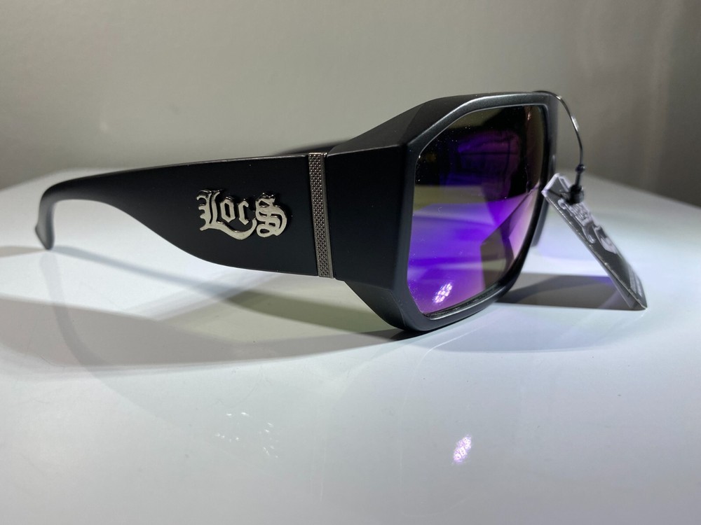 Men's smoke black lens sunglasses with graffiti purple black side arms
