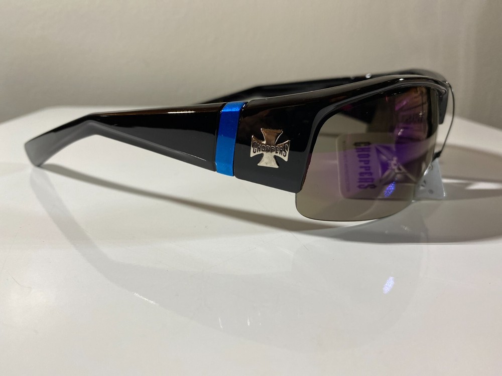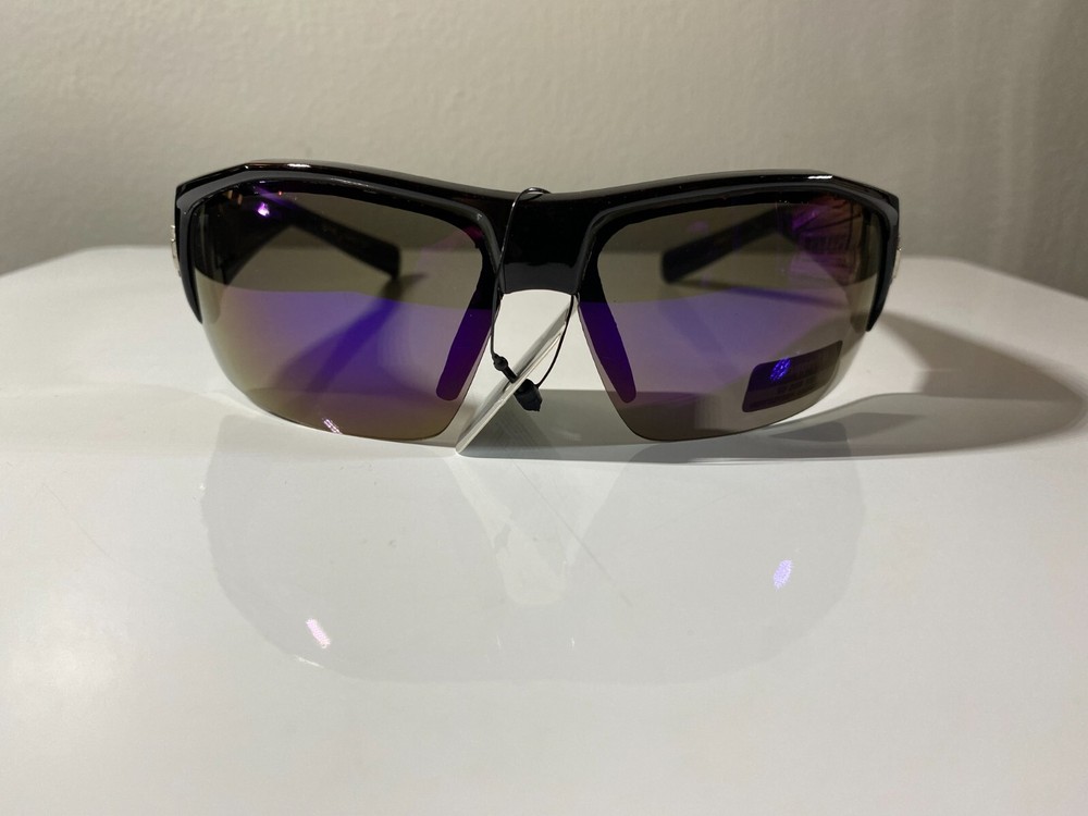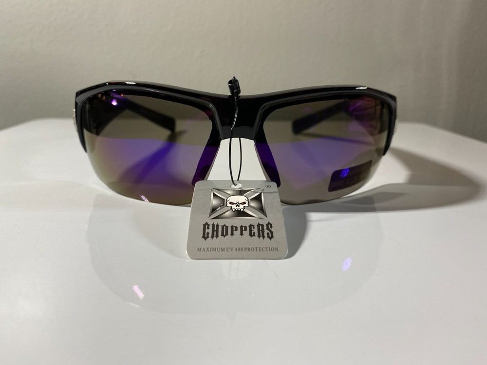 Features: Reflective Type: Sunglasses Brand: Choppers Lens Color: Purple Frame Color: Black Department: Men Lens Technology: Mirrored