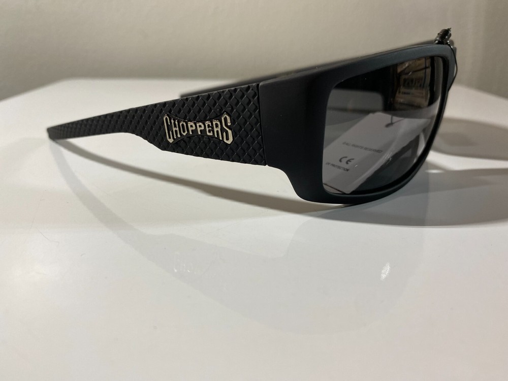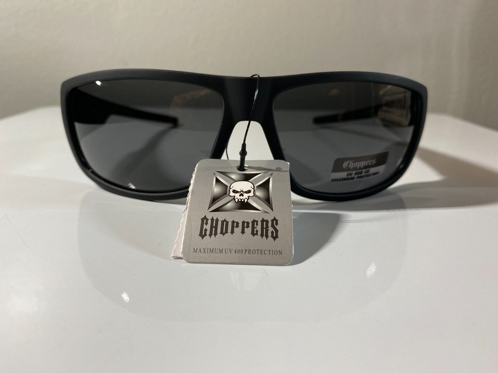 Men's popular riding sunglasses with black frame and smoke black lenses. Great price.