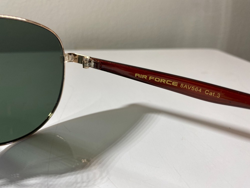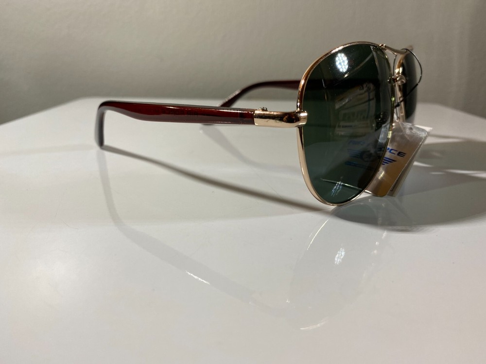 Men's aviator style sunglasses with gold wire frame and green lenses. Great price.