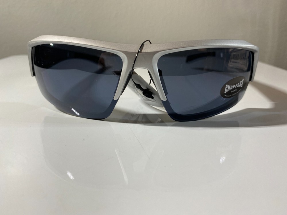 Men's popular riding sunglasses with gray frame and smoke black lenses. Great price.