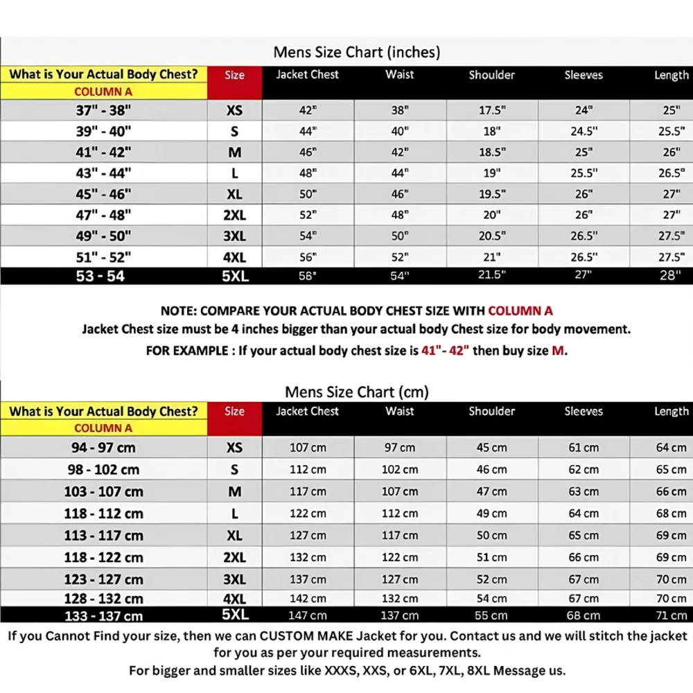 Features Condition : Brand New With Tags Condition Size Details : Kindly Refer Size Chart Below. Zipper : Metal zipper (YKK) Inside : Soft Smooth Satin Lining Brand : Handmade (Made by SKILLED CRAFTSMAN) Style : Motorcycle / Biker / Bomber / Chris or as shown in picture Attractive style Jackets. Design : Brilliant Design & Premium Stitched Through Out. Handmade : Brilliantly Designed, professionally cut & Premium stitching, we have manufactured it with all attention to details. Leather : This jacket is made exactly as Premium Class leather. It has been carefully. Available in Real Leather. Season : Ideal for All Season. Color : As in the listing images Color might slightly vary due to digital photography and monitor resolution, We Try Our Best to Adjust the Lighting to Acquire the Right Color of Each Item. However as With all Digital Photos, Colors May Vary From Computer to Computer. SIZE THESE ARE USA STANDARD SIZE BUT SLIM FIT IF YOU WANT A RELAX FIT BUY ONE SIZE UP. WE CAN ALSO MAKE THIS JACKET ACCORDING TO YOUR REQUIRED MEASUREMENTS. PLEASE MENTION YOUR SIZE DETAILS IN THE PERSNALIZATION SECTION YOUR CHEST,ARM,SHOULDER TO SHOULDER & LENGHT MEASUREMENTS? Please make sure that you select the right size from the above-mentioned size chart. If you have any confusion, please contact us before buying the product so that we can guide you about the right size. If your size is not available in the above size chart, then contact us via Messages. Customize / Tailor Made Leather jacket for Men & Women in Genuine Lambskin leather jacket custom made orders as per your requirement we will give you. Dear Customer, Please answer the below questions in order to serve you better : Shoulder= Chest= Arms = Waist = Sleeves= Tummy = Length of jacket = HIP = Actual height = Fitting = slim and Regular Please note we do keep loosing from the body measurement. Why Choose Us? Our creative mind set is about fashioning current and classic pieces that everyone can make his own, every day. Leather never lies - so size, tailoring and quality are our guarantee. We research different ways to treat the material and bring in specially crafted details. Truly, we embrace the adaptable nature of leather as that requires each piece to be exclusive and irreplaceable. Customization Q: Can our logo or any design be printed, embossed on the products? Yes, changes in design, color, leather type etc. can be made on demand. Please contact us. We can design and develop products as per your specific requirements. QUALITY IS GURANTEED We believe in long-term relationship with our Customers. We use the high-quality Leather in our products, buy with confidence. If you have any problems with our items, please let us know before leaving a feedback and we will happily resolve your issue. Buy with confidence Q: Why choose us as your seller? 1: We are manufacturer & don?t compromise with product quality. 2: We offer competitive prices. 3: No extra charges on customization. 4: Satisfy customers with appropriate communication. 5: No fuss returns policy. RETURN POLICY Q: What are your policies regarding any dispute or return? We strictly follow the eBay policies. We offers 30 days money back guarantee. We are more than happy to work out any replacement or disputes that customers may have. Please contact us before Opening the Disputes and Cases or leaving unwarranted feedback. we will be happy to resolve your issues related the order. 24/7 Online Customer Service Q: My question is not listed here? If you might have any question please send an eBay message directly, we will assist you 24/7. FEEDBACK If you are unhappy with Our service for some reason please discuss it with me before leaving a negative one. A Positive Feedback Will Be Automatically Left For a Positive experience. Shipping Policy As Per The Shipping Section of the Product. Tracking number will be provided after shipment. We use DHL, FedEx and UPS for all country. Payment Method We will accept payment through eBay.
