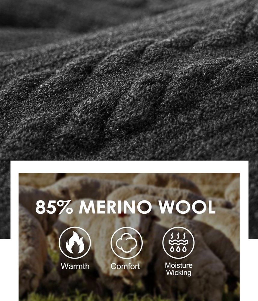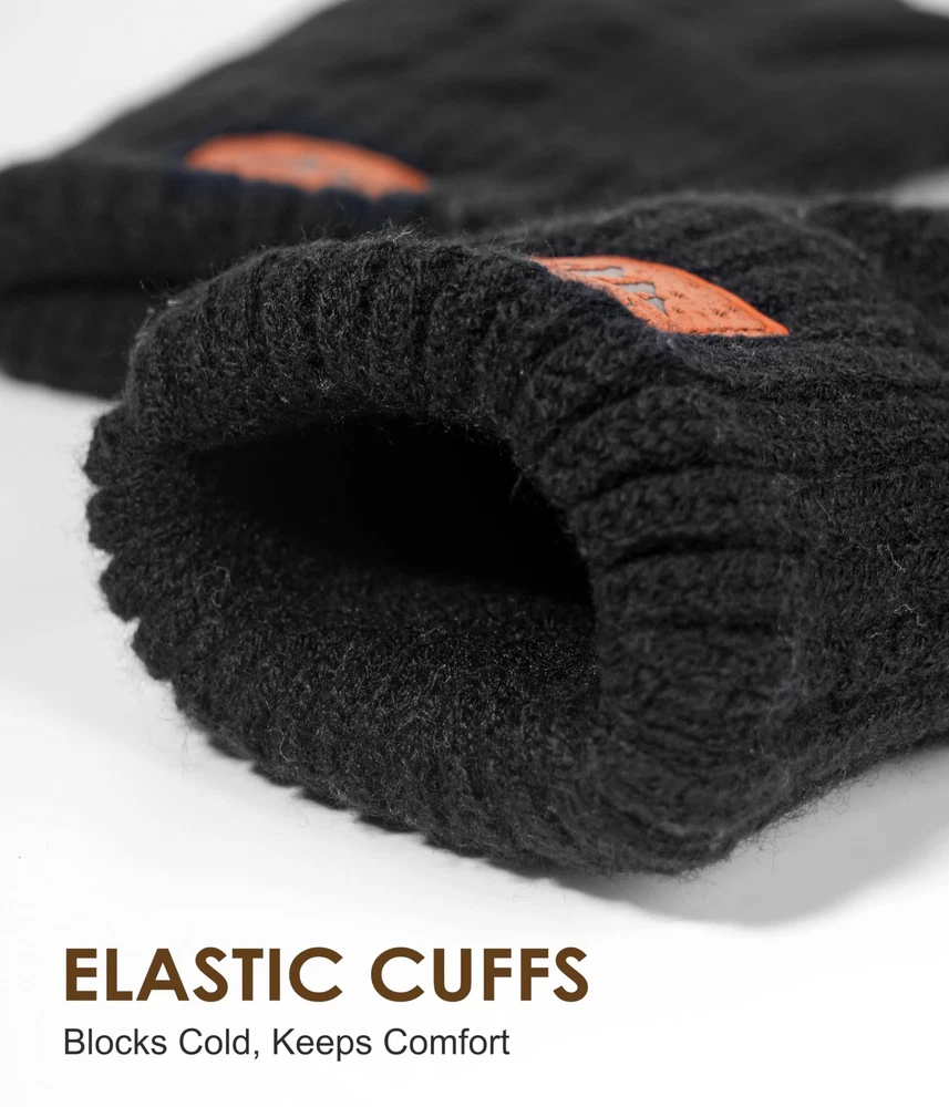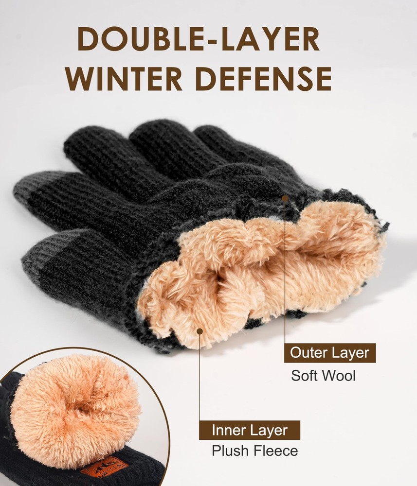 Merino Wool Gloves for Men Women, Touchscreen, Thermal, Winter Black