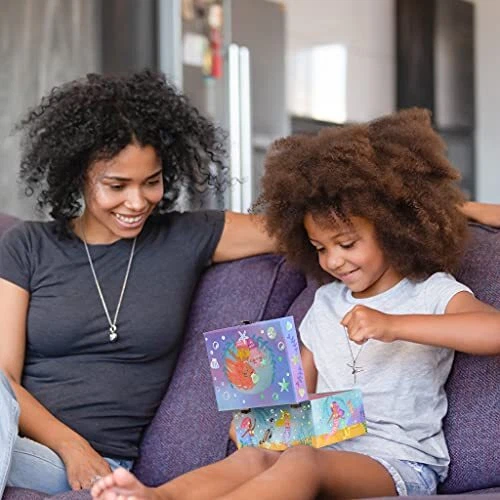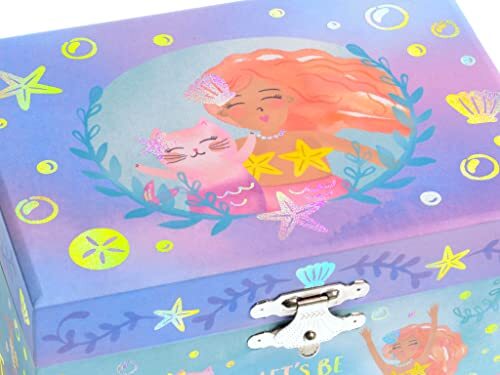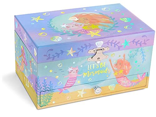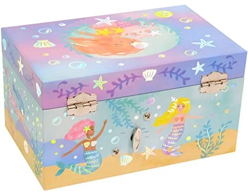 Mermaid Musical Jewelry Box with Rainbow Design and Pullout Drawer for Girls