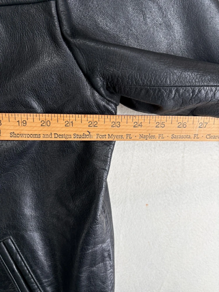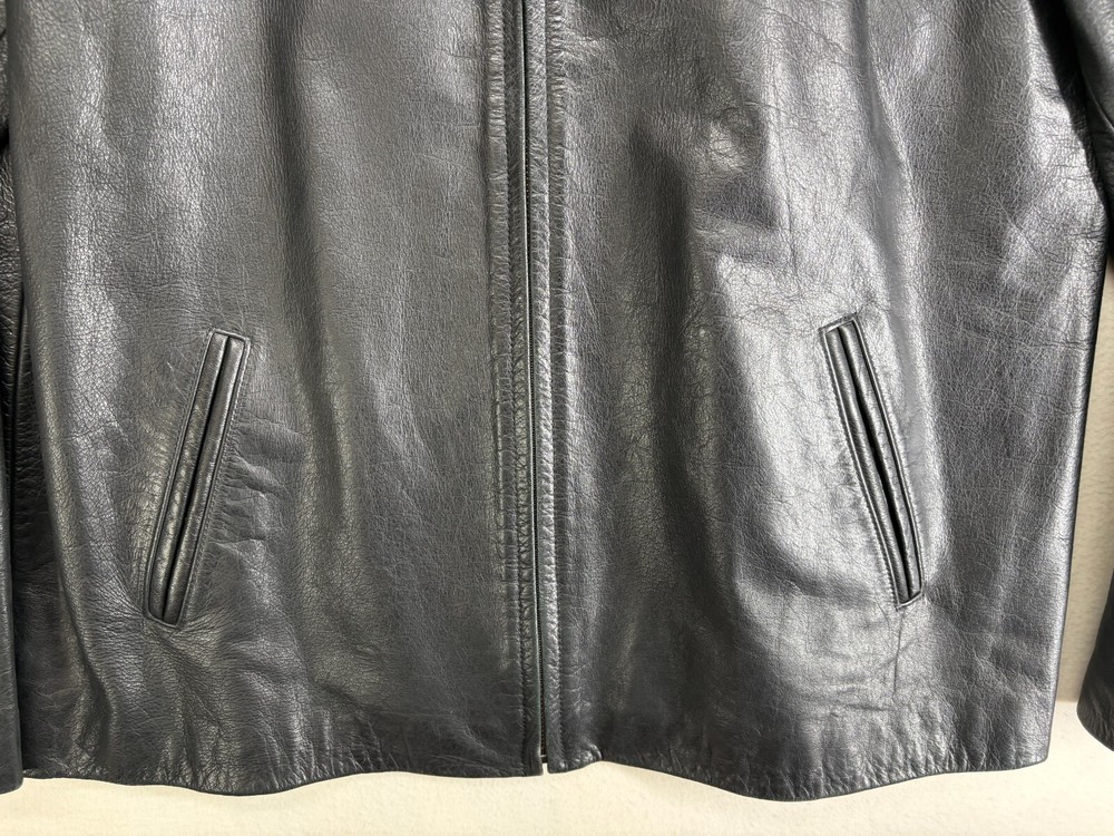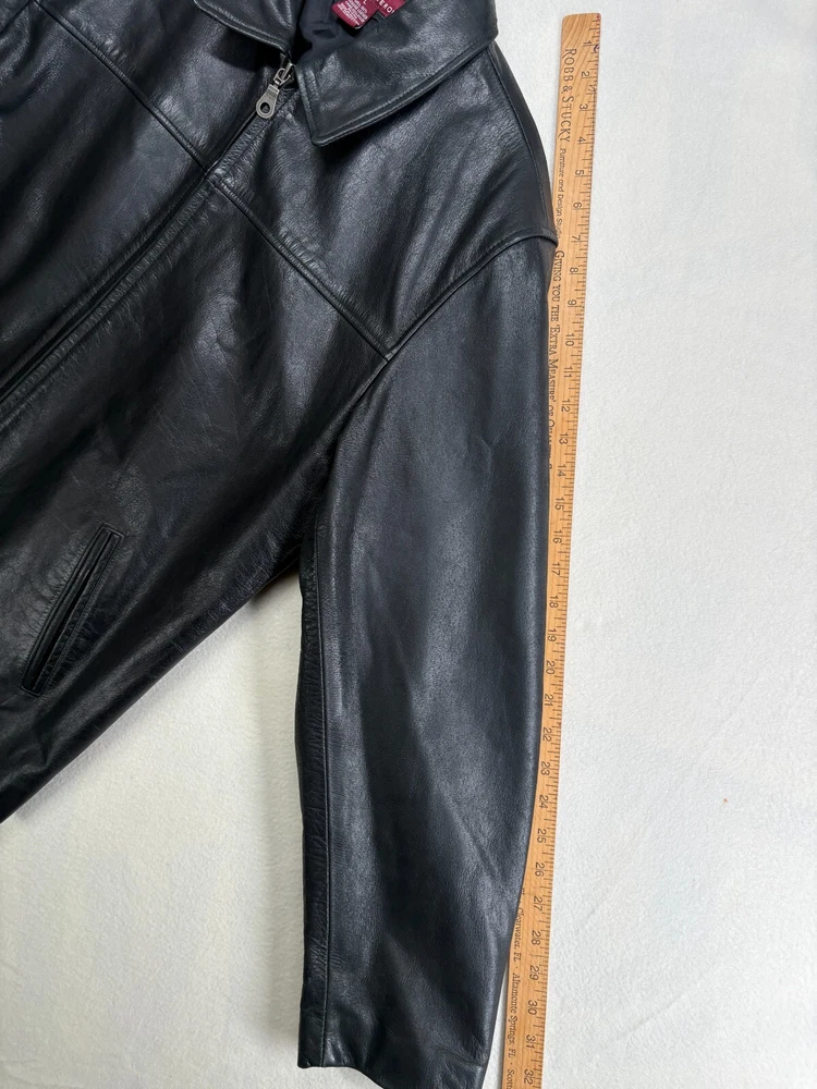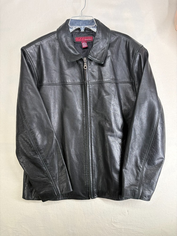 HomeMerona Leather Black Bomber Jacket Mens Large Lined Pockets Zippered Coat