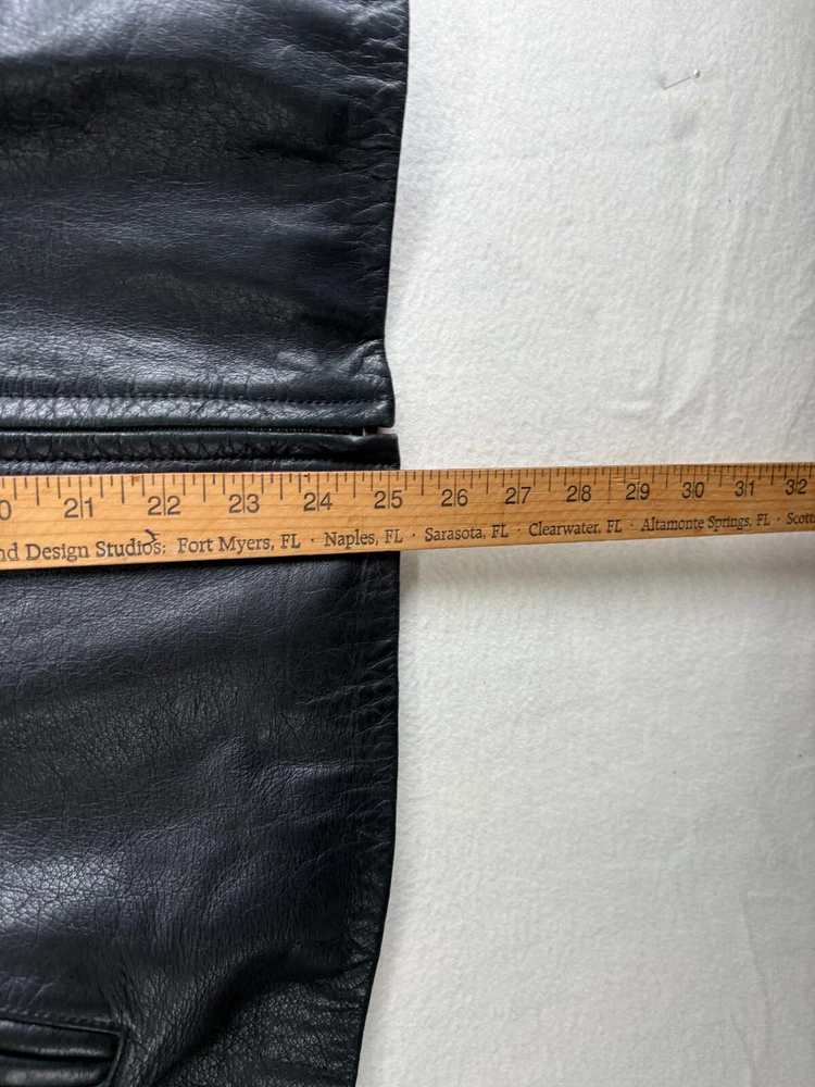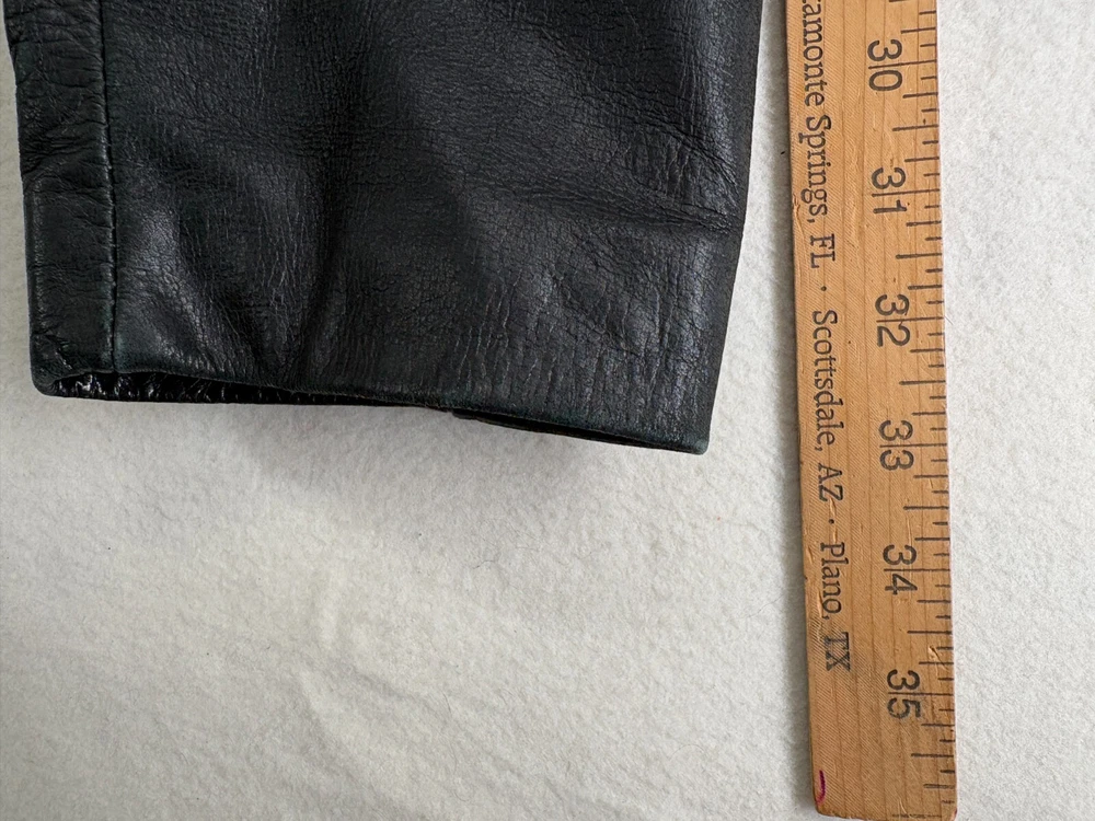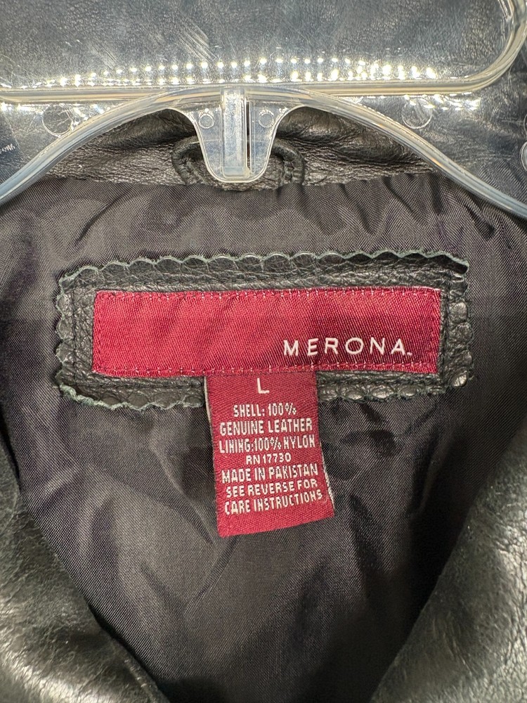 Pattern:SolidModel:Merona bomber jacketTheme:Cars, Motorcycle, OutdoorSleeve Length:approx 25 inchesOuter Shell Material:LeatherCollar Style:PointPersonalize:NoClosure:ZipChest Size:46 inchGarment Care:Cleaning by Leather SpecialistSeller Notes:“Jacket is in very good pre-owned condition with typical marks and wear associated with use and age.”Type:CoatColor:BlackBrand:MeronaFit:ClassicJacket/Coat Length:ShortDepartment:MenFabric Type:SoftshellAccents:Distressed, Leather Slit Pockets, ZipperMaterial:Leather Outer, Polyester LiningLining Material:PolyesterSize Type:RegularCountry/Region of Manufacture:PakistanSize:LFeatures:All Seasons, Collared, Full Zip, PocketsOccasion:Business, Casual, Party/Cocktail, TravelStyle:Bomber JacketHandmade:No