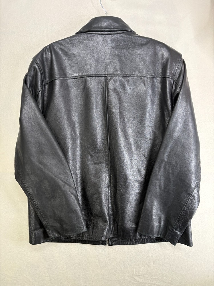 Merona Leather Black Bomber Jacket Mens Large Lined Pockets Zippered Coat