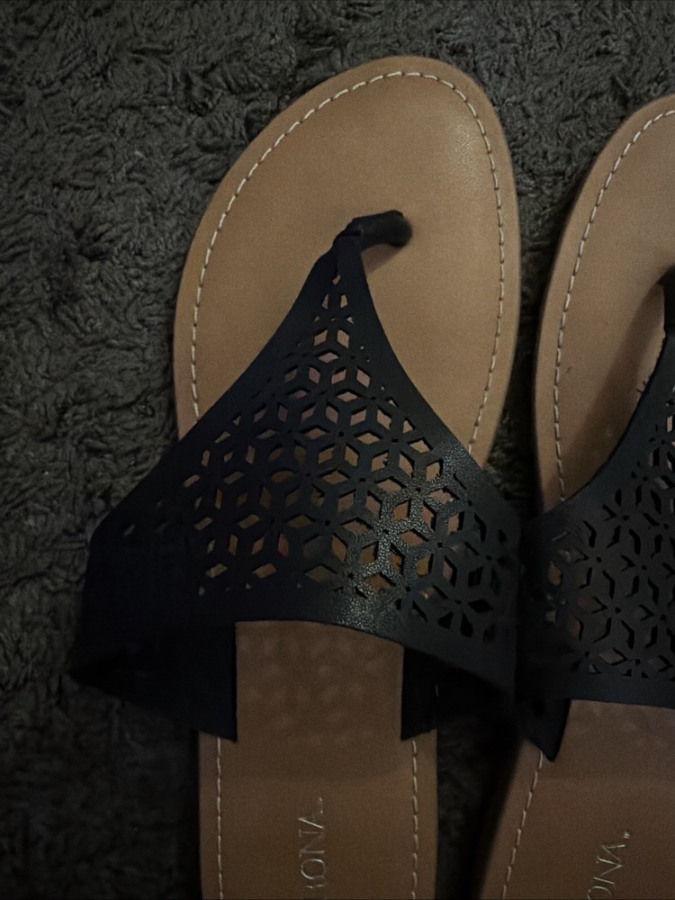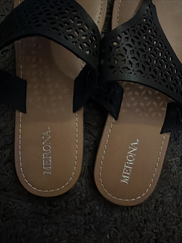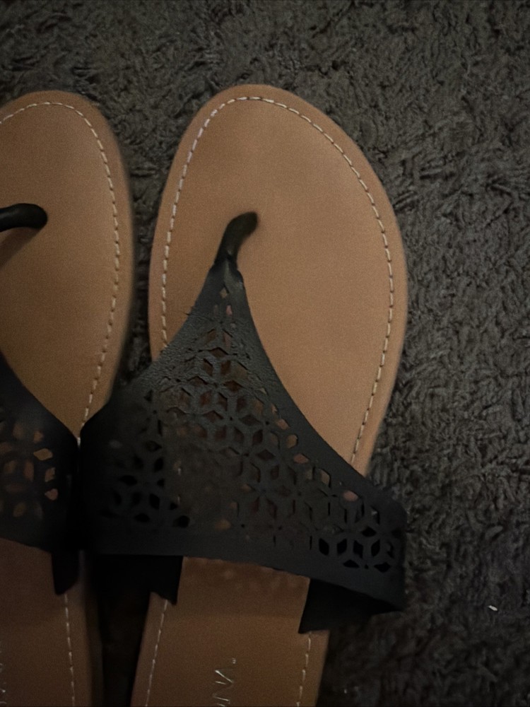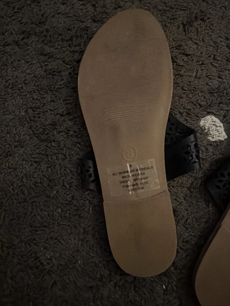 Women’s size 8 Merona black sandals Minor dirt on bottom Only worn a few times