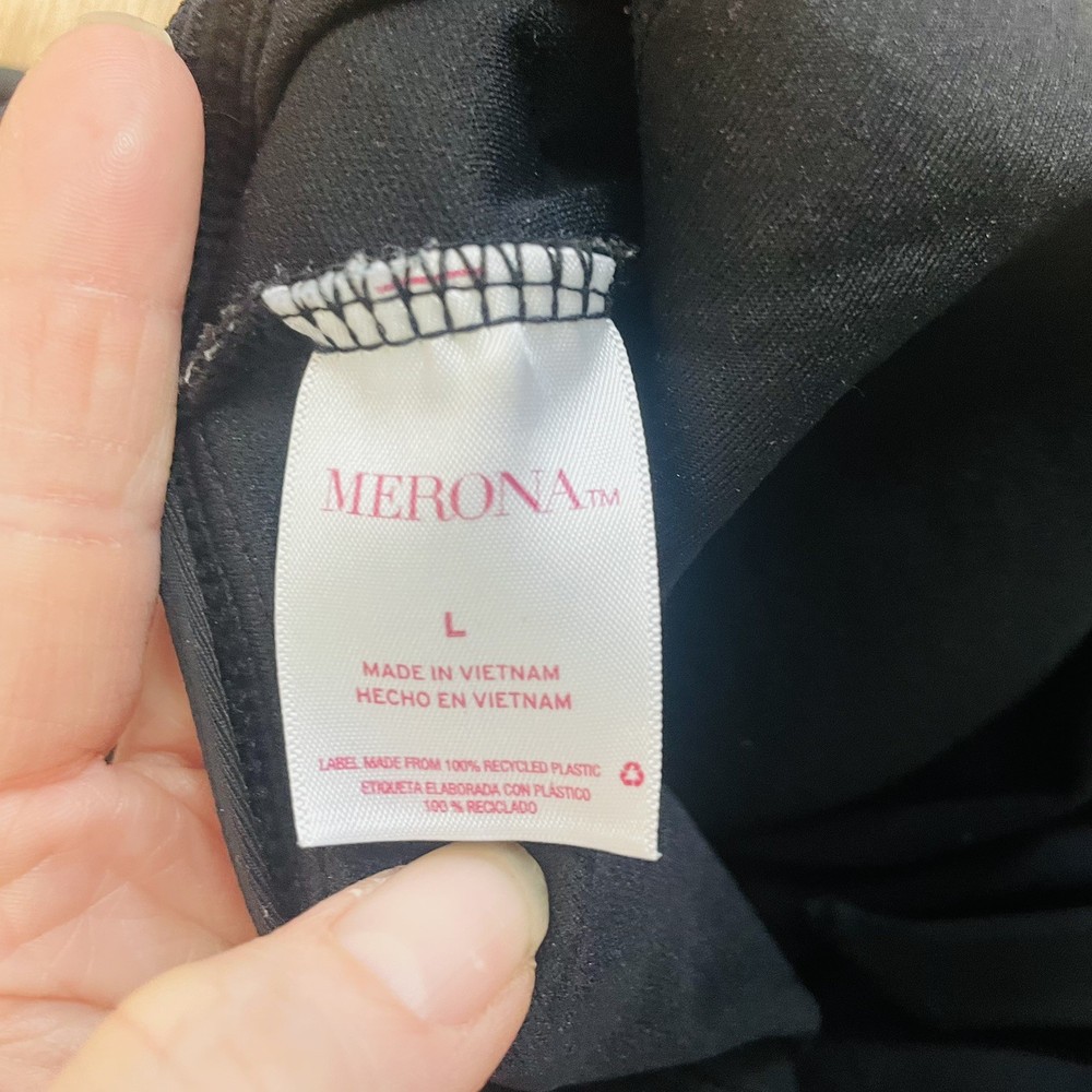 The Merona Tankini Top Swimsuit in black is a stylish and practical choice for women looking for a comfortable and flattering swimwear option. With a wide halter tie strap and built-in padded bra, this tankini provides both support and style. Made from a blend of nylon and spandex, this one-piece suit is lightweight and stretchy for a comfortable fit. The geometric pattern and hipster theme make it perfect for a day at the beach or pool, while the adjustable strap ensures a customized and confident look. Whether you're looking for a classic or trendy swim top, the Merona Tankini is a versatile choice for any water activities.