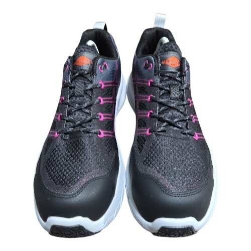 The Merrell MOAB FLIGHT CF Women's Safety-Toe Work Shoe in black is a stylish and durable sneaker designed for active women who perform outdoor activities like hiking. With a low-top design, lace-up closure, and a rubber outsole, this shoe provides comfort and support for all-day wear. The foam insole offers added cushioning, making it ideal for long walks or hikes during the summer, fall, or spring seasons. The safety-toe feature adds an extra layer of protection without compromising on style, making this shoe a practical and fashionable choice for women on the go.