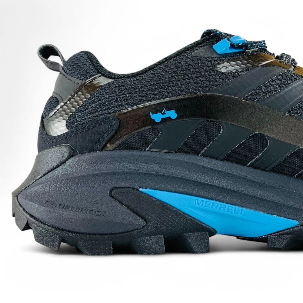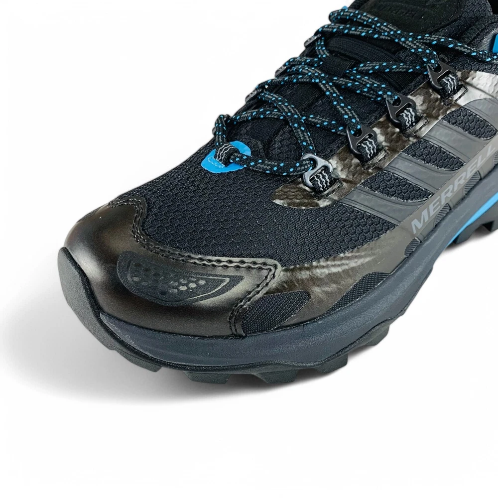 Merrell Moab Speed 2 x Jeep Black Blue Men's Trail Running Hiking Shoes J5007247 Two powerhouse outdoor brands come together to create these all new Merrell Moab Speed 2 x Jeep hiking shoes. These men's shoes are built for runners, athletes, and anyone who likes the outdoors. The Moab Speed is a lightweight, protective hybrid designed to give you confidence to tackle any trail. These shoes feature a padded collar plus a bellows tongue that keeps out debris. Their lightweight FlexPlate™ technology provides torsional rigidity, lateral stability, and forefoot flexibility, while their Vibram® TC5+ outsole provides exceptional traction for outdoor multi-sport activities. Get in touch with nature while repping your favorite car brand when you take home your very own, brand new pair of these Merrell Moab Speed 2 x Jeep hiking shoes. Product Condition These shoes are brand new and include their original shoe box, unless otherwise noted. The shoe box may have minor damage. This is a 100% authentic product, guaranteed or your money back. Sizing All size options provided in this listing are U.S. men's shoe sizes. Please reference the chart appearing in our product images to find your approximate size conversion (e.g. UK sizes, EU sizes, etc.). More Details Suggested Retail Price: $180 Brand: Merrell Model: Moab Speed 2 x Jeep Style Code: J5007247 Gender (for sizing): Men Age: Adult Main Color: Black Customized: No Closure: Lace-up Shoe Shaft Style: Low-top Great For: Hiking, Trail Running, Running, Jogging, Walking, Running Errands, Going Out, Daily Activities, Casual Wear, Going to Work