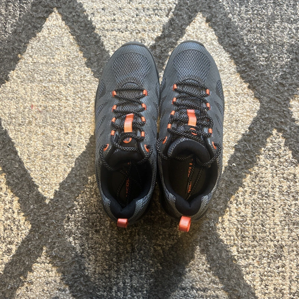 Step up your game with the Merrell Select Grip Athletic Shoe, tailored for those who demand performance and style. Size 9.5 US, 9 UK, and 43.5 EU, this shoe is designed to fit seamlessly into your active lifestyle, whether you're hitting the gym or conquering trails. The sleek gray synthetic upper provides a sturdy base while maintaining a lightweight feel, perfect for cross-training or hiking. Engineered for breathability and comfort, the Merrill All Out Rush model boasts features like a supportive rubber outsole and a secure lace-up closure. The solid pattern and low-top shaft style ensure a versatile look that's just as suitable for a casual day out as for your next workout session. Embrace the fusion of functionality and style with these athletic sneakers, a must-have for any active wardrobe. Shoes are basically new. Only worn a few times. Please let me know if you have any questions before purchasing.