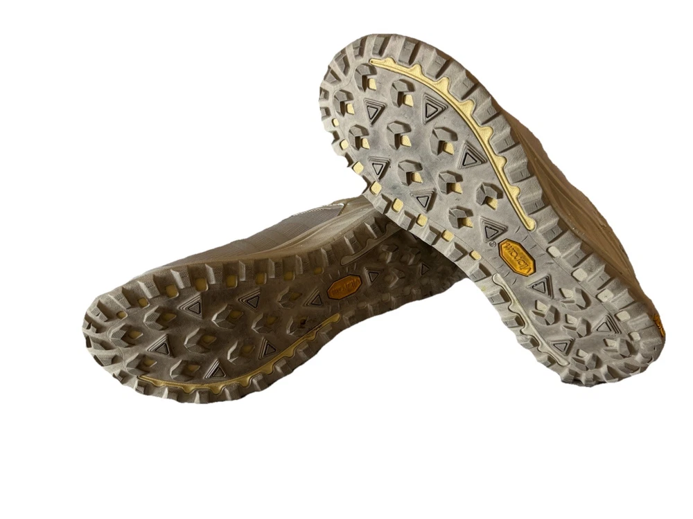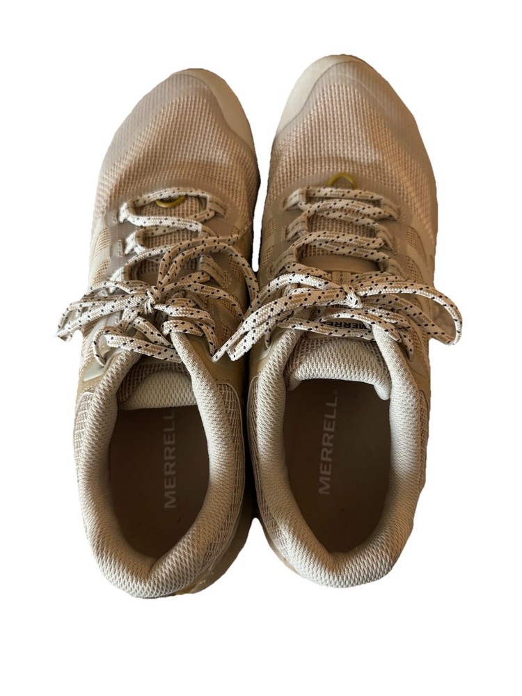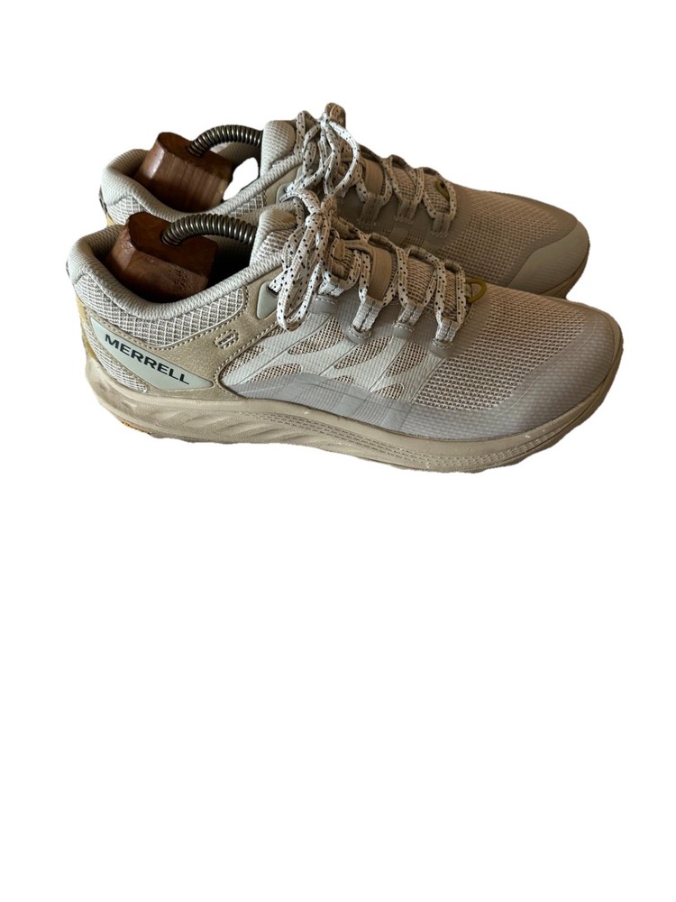 The Merrell Antora 3 Trail-Running Vibram Sole Shoes in Oyster Color are designed for women with a US shoe size of 9.5 and EU shoe size of 39. These athletic sneakers feature a comfortable and breathable design, perfect for sports enthusiasts. The synthetic upper material ensures durability, while the Vibram sole provides excellent traction for trail running. The stylish Oyster color and sleek sneaker design make these shoes a versatile choice for any outdoor activity.