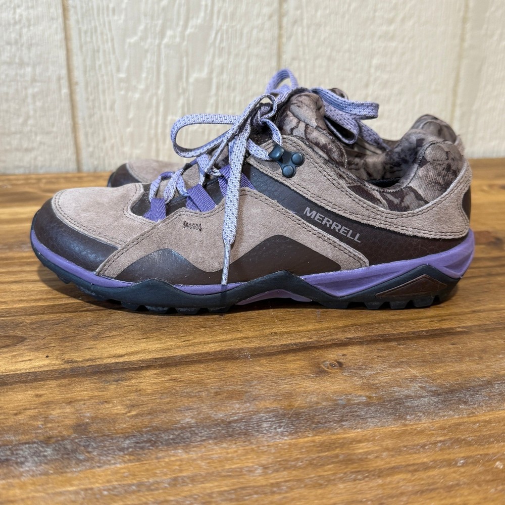 Merrell Womens Fluorecein Performance Hiking Shoes Brown Purple Camo Size 5